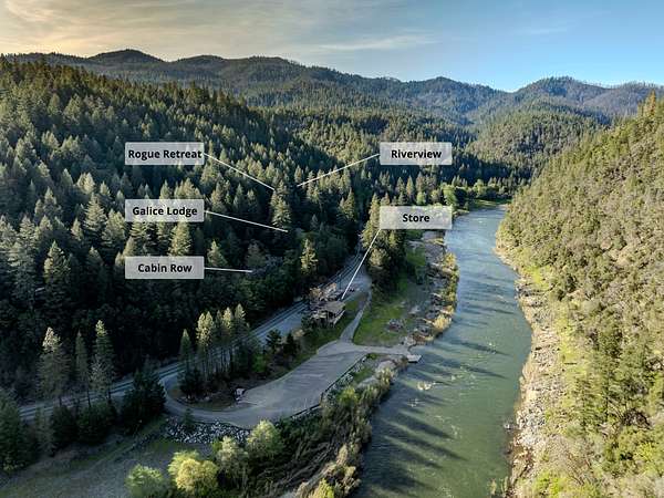 Galice Resort offers year-round lodging with three spacious lodges and seven well-appointed cabins, making it an ideal basecamp for outdoor adventure. From May through September, the resort comes alive with a riverside store, vibrant food truck court, and live music events that create a festive yet laid-back atmosphere. Ideally situated just upstream from Grave Creek, Galice is the last stop for many before entering the Wild & Scenic section of the Rogue, and often the first place they return after multi-day adventures. The area is known for world-class rafting, fishing, hiking, and wildlife viewing, drawing outdoor enthusiasts from around the country. This offering is turnkey, including 12.8 acres across 10 tax lots, lodging improvements, a general store, and all supporting infrastructure, as well as the operating business with all furnishings, fixtures, equipment, and branding assets included.