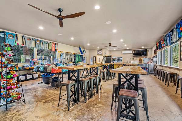 Boathouse Store: The Riverfront store serves as the central hub for food, drinks, supplies, and entertainment--complete with a full bar, soft serve ice cream, food, drinks, essential gear, gift shop, and indoor seating with views of the Rogue River. The adjacent outdoor event space offers a lively atmosphere with food trucks, live music, and yard games throughout the summer season. This vibrant gathering area brings energy and community to the resort.