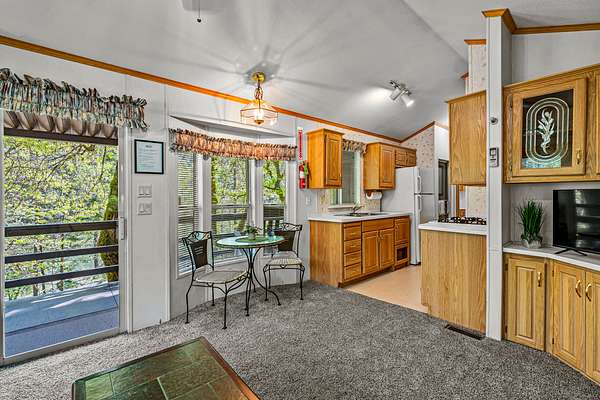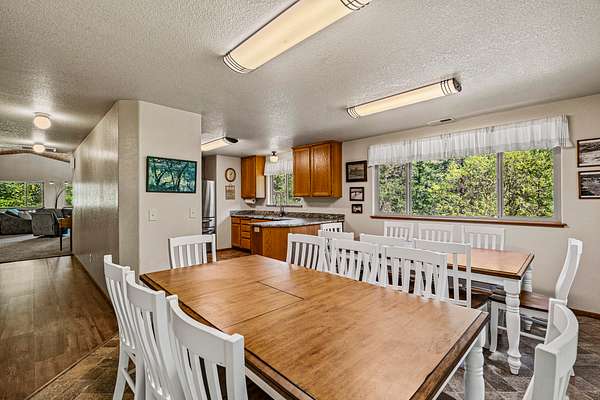 Riverview Lodge: The most private lodging option at Galice Resort, offering 5 bedrooms (with 10 beds) and 3 full baths across 2,774 square feet. Featuring a remodeled main level with an open-concept kitchen and living space, a wall of windows, and a large deck with hot tub, the home is ideal for both entertaining and relaxation. With flexible sleeping arrangements across two levels, the property is well-suited for large groups and also offers strong potential as an owner-operator residence thanks to its layout and location.