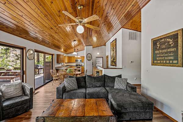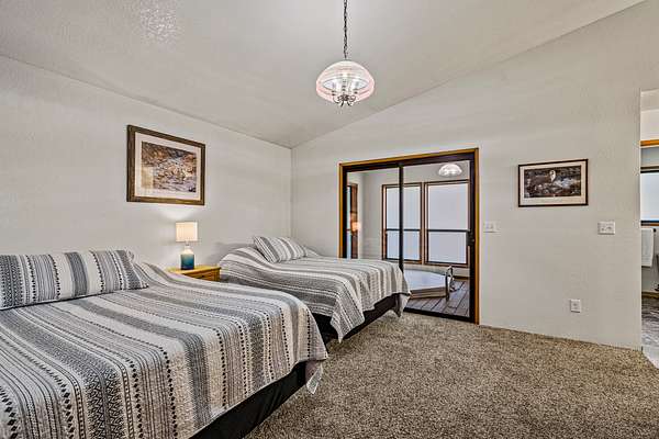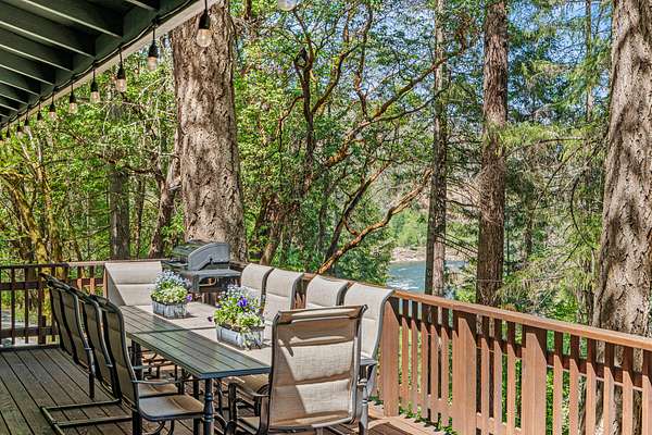 Rogue Retreat: A spacious, traditionally designed two-story home ideal for large groups or multi-family stays. The layout features a master suite with a spa room, additional guest accommodations on both levels, a generous living area, and a large shaded deck with views of the Rogue River. Four different sleeping spaces provide a total of 12 beds. While currently used in the lodging pool, the home also presents strong potential as an owner's residence.