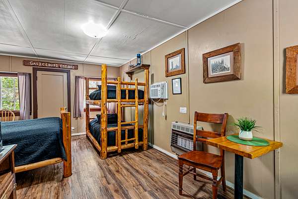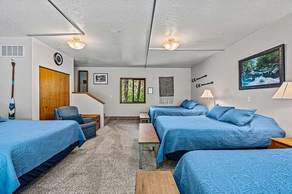 Galice Lodge: The resort's largest and most versatile accommodation, offering 8 bedrooms (with 15 beds) and 7 full baths across three stories and over 5,100 square feet. Ideal for large groups, the lodge includes private en-suite bedrooms, spacious gathering areas, a full kitchen, a recreation room, and a dedicated hot tub room. While the entire lodge can be reserved for exclusive use, individual rooms can also be available.