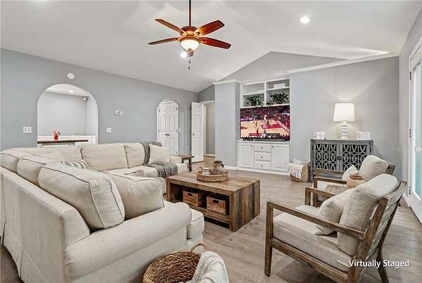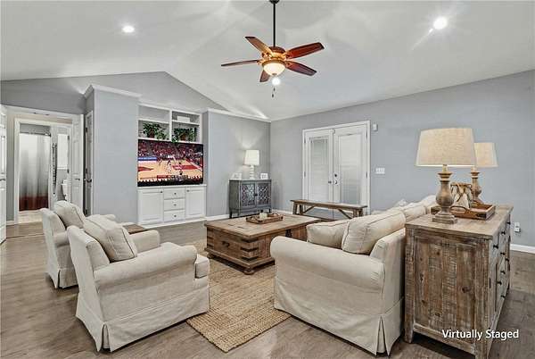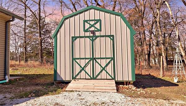 3BR/2.5BA home on 2.94 acres with split-bedroom plan. Living room features vaulted ceilings and built-ins. Vinyl flooring in main areas. Large kitchen with granite countertops and breakfast area. Primary suite offers wood floors and walk-in closet. Guest bath includes new mirror. Built with 2x6 exterior walls and insulated interior walls for efficiency. New roof in 2025. Covered front porch and spacious back deck. Heated garage. Well replaced in 2008 with 500-gallon holding tank. 20x24 insulated workshop with roll-up garage door and mini-split, plus 8x8 storage building. POA amenities include community pool, tennis courts, boat ramp, and airport. Up to $2000 of lender credits with preferred lender.