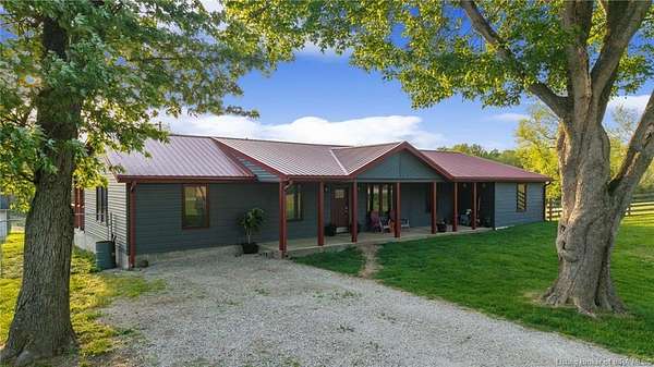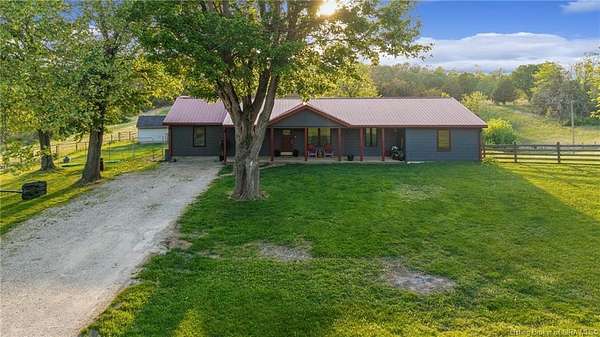 This one in Harrison County has a lot to offer. Starting with 27.59 acres of privacy, 85% of which is pasture that is fenced with high tinsel wire, 3 pole barns & 2 sheds. This updated home offers 2371 sqft all on one level with 4 beds & 2 baths. You'll appreciate the durability & low maintenance of the porcelain tile throughout, electrical & plumbing has been upgraded, new water heater, metal roof, new Pella windows & doors to name a few upgrades. The kitchen has granite counter tops, large island, stainless appliances to remain, and a HUGE pantry. It is worth talking about the spacious master suite - with a 7x4 walk in tile shower, soaker tub, convenient washer & dryer area & a HUGE closet with space galore for storage & organization. You'll dream & make your plans on the 12x52 deck, consider the hunting possibilities or watch the wildlife in this peaceful quiet oasis.