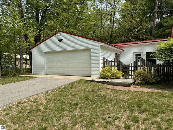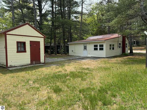 Up North Living Near Bear Lake! Tucked back off the road, away on 4.78 wooded acres of gently rolling terrain, this clean, move in ready 3BR, 2BA home offers the perfect blend of comfort, privacy, and year-round adventure. Surrounded by mature hardwoods and stately pines, the property features a bright island kitchen open to the LR and DR, side deck with awning, durable metal roof, paved driveway, and a breezeway connecting the attached 2 car garage. 1,424 sf of main level living, central AC, hardwired Generac generator, and all kitchen appliances included. With the adorable 2BR 1BA cabin you can invite friends and family to share in the Up North experience. Large living room with gas fireplace. Spacious kitchen with wood cabinets and laundry room with washer and dryer. Just half a mile down a charming, 25mph paved road lined with cozy cottages and homes, you'll find public access to beautiful, all sports Bear Lake perfect for boating, swimming, and small mouth Bass fishing. And when the seasons change, you're only 2 miles from the ORV and snowmobile trailhead, making this a four-season haven for outdoor enthusiasts. Two additional outbuildings are a great place for all your toys. Let your Northern Michigan dreams take root here.