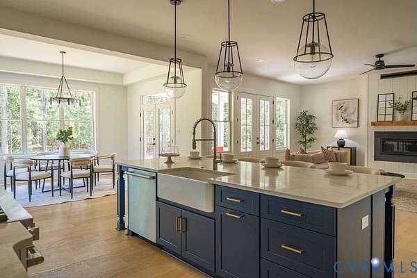 - Bedroom On Main Level, Breakfast Area, Fireplace, High Ceilings, Kitchen Island, Walk In Closets
