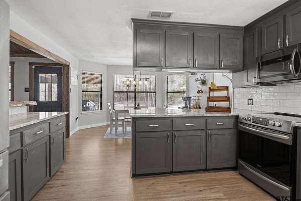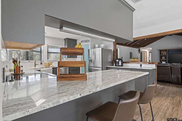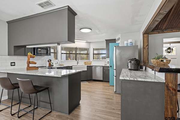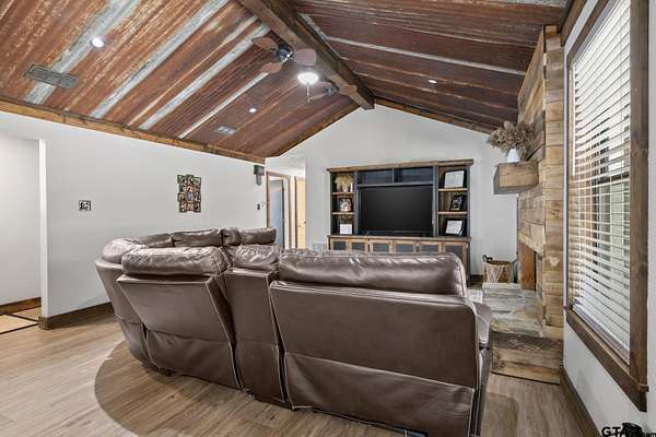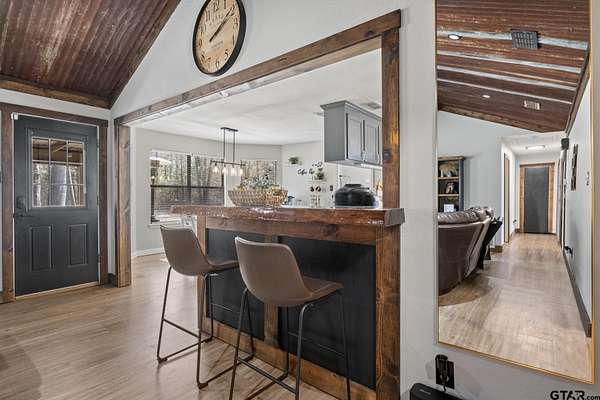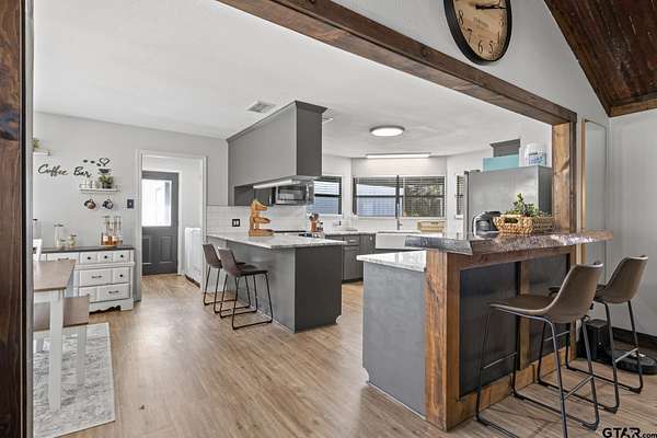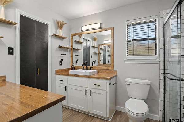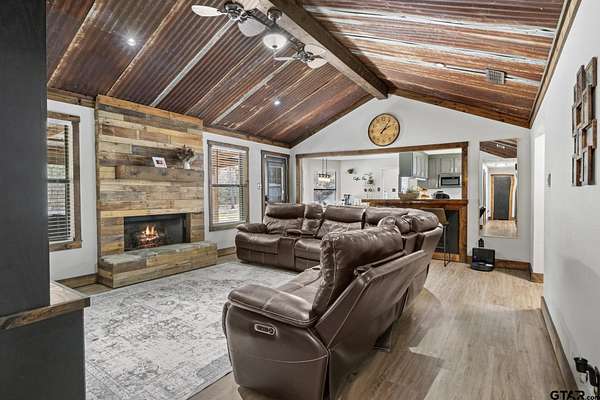Escape to this fully updated home located just outside of the city limits. As you step inside, you'll be greeted by a cozy living room with a vaulted ceiling and painted statement fireplace, perfect for relaxing evenings. This home is ideal for hosting gatherings with two breakfast bars and an eat-in kitchen dining area. The primary suite features an ensuite bath with a luxurious getting-ready vanity. Plus, the two guest rooms share a beautifully appointed hall bath. Situated on 10 acres of land, this property also includes a newly built shop with two bays, offering plenty of space for hobbies or storage as well as an additional shop with electricity and water that could be converted into a bardominium with additional shop space for guests or to be used for income. Embrace the serenity and possibilities of this wonderful countryside retreat.