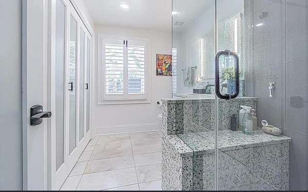 All windows and doors are hurricane rated and have custom wood Plantation shutters