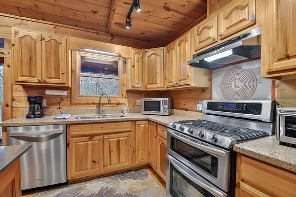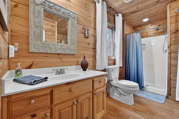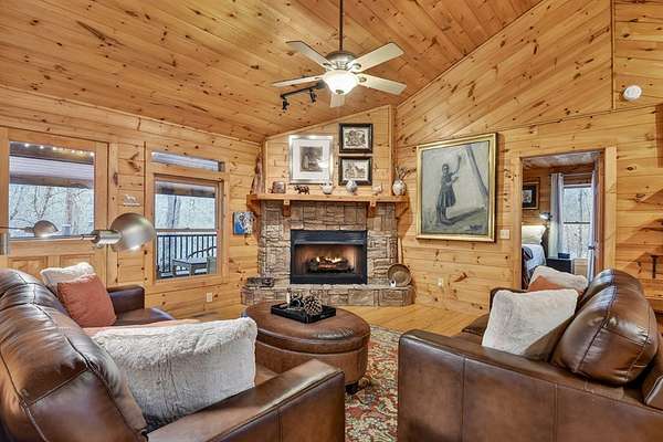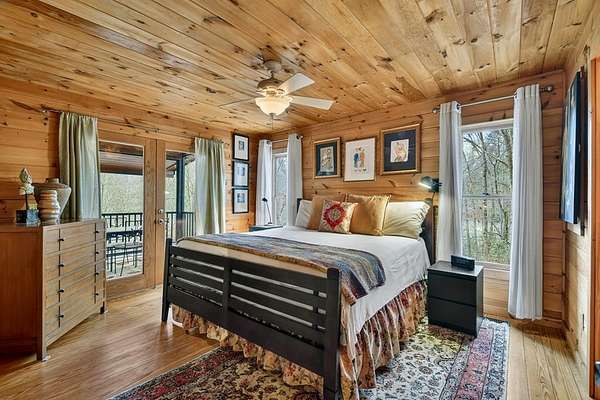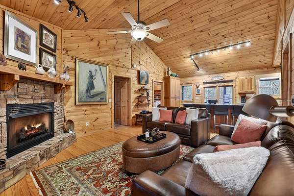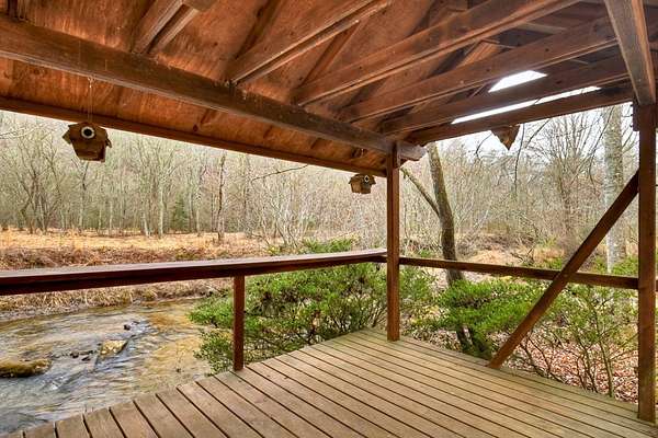 ~LITTLE FIGHTINGTOWN CREEK COMPOUND~ This story book setting is nestled alongside a rushing mountain creek delivering unmatched tranquility on 1.90 beautiful private wooded acres. The main cabin features 2BR's & 2BA's all on one level with detached 2 car oversized garage w/ living quarters above featuring a 1BR, 1BA in-laws-suite/apartment including full kitchen. Garage also features a built-in workshop area w/ cabinetry + attached 1 bay covered carport perfect for your RV/camper, tractor, ATV's, etc. From the moment you step inside, you'll feel the comforts of this home - mountain living at its best! Exterior construction features modern rustic architecture with log siding & cedar shakes w/ metal roof. Spacious open floor plan featuring double en-suites joined by living & kitchen area featuring custom cabinetry w/ quartz countertops, stainless appliances & stone gas log fireplace in great room. Large screened-in "sleeping" front porch spans the entire length of the home overlooking this nature-rich private setting listening to the cascading waters w/ approx. 300' of frontage on Little Fightingtown Creek & just over 300' of frontage on Charlotte's Branch w/ Creekside pavilion & fire pit area. Fenced in area on rear side of home is a huge amenity for pet owners. Convenient location within a 15 min. drive to downtown Blue Ridge yet the feeling you're tucked away among hundreds of acres. Enjoy access to nearby USFS land for hiking, mtn. biking, fishing, horseback riding & more.