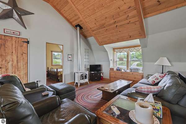 Exceptional Development Opportunity on Old Mission Peninsula - 90 acres with Barndominium and Outbuildings. Welcome to 11751 Center Road, a rare and expansive offering nestled in the heart of Traverse City. One of Michigan's most scenic and sought after regions. This unique property includes four contiguous parcels totaling approximately 90 acres, providing an incredible opportunity for private estate living, agricultural pursuits or residential development. At the heart of the property sits a charming three-bedroom barndominium, blending rustic appeal with modern comfort. The open-concept design offers high ceilings, exposed beams and abundant natural light-ideal as a primary residence, weekend retreat or guest accommodation. Additional features include: *Dedicated migrant housing building, perfect for seasonal labor or conversion to guest quarters. *Two car garage for secure parking or storage. *Spacious four car outbuilding, ideal for equipment, hobbies or workshop use. The land itself is a mix of open fields of cherry trees, grape vines, pumpkins and rolling terrain and wooded areas, offering endless possibilities-from vineyard or orchard expansion to custom home sites, up to ten homes can be built. With direct access off Center Road, you're minutes from downtown Traverse City, award winning wineries, Lake Michigan beaches and everything the peninsula has to offer. This is a rare opportunity to own a significant slice of Old Mission Peninsula-prime development, investment or legacy living.