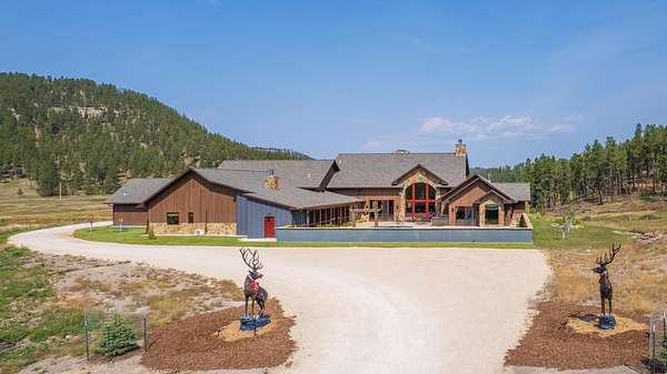 Call Cody Norberg 605-939-4300 for showings. Lewis Realty is proud to introduce this stunning executive retreat offered for the first time ever. 127 acres boasting panoramic views, unparalleled privacy, and endless recreation with amazing access to miles upon miles of Black Hills National Forest. This one-of-a-kind property is a true supercharged water wonderland! Four Mile creek runs the span of the property, with many streams and wetlands throughout. This wildlife sanctuary is full of resident elk herds, as well as both mule & whitetail deer, bighorn sheep, coyotes, turkeys, pheasants, eagles, osprey & more. The crown jewel of the Black Hills: newly crafted custom-built luxury home, professionally decorated to perfection. The main living area features 2 bed/ 3 baths, a grandiose vaulted ceiling great room, a gourmet chef's kitchen w/ a large pantry, a master suite beyond compare, a spacious office & game room. Explore further & you'll find a theater room & exercise room leading to two more bedroom suites, living area, second laundry, all connected by a shared courtyard. The outdoor living space invites you to relax & entertain with a full outdoor kitchen, a huge fireplace, & a sprawling courtyard featuring a swimming pool, patio, sauna, & hot tub. Every detail has been meticulously crafted to create the perfect home. This is your chance to own a slice of unparalleled luxury. Let the world fade away and immerse yourself in the tranquility of Black Hills paradise.