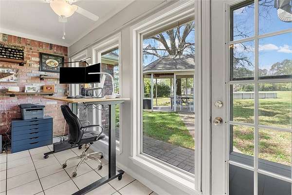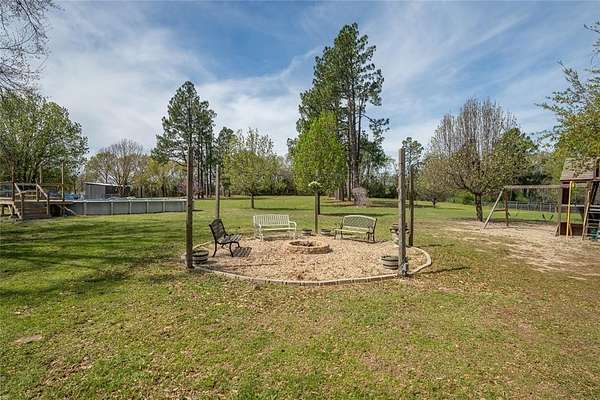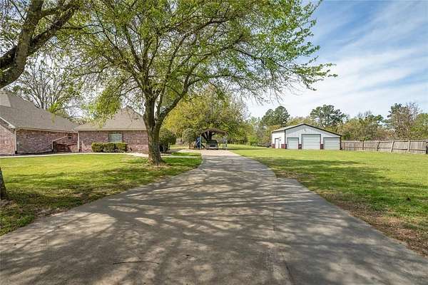 Take a look at this exceptional shady 2.8-acre estate with a 4-bedroom, 3-bathroom brick house with 20x30 workshop on a peaceful country setting! Drive through the elegant and gated brick-n-wrought-iron fencing. Inside, you'll find lots of space, quartz countertops, a breakfast bar, eat-in dining, walk-in pantry, and extra storage. From the oversized windows, enjoy views of the part-wooded, fenced backyard. The primary bedroom features double sinks with vanity area, garden tub, and separate shower. Additional upgrades are, updated bathrooms, above-ground pool, some new windows, 2020 HVAC, new sidewalk, kid's play set and a fire pit. Versatile landscape and outdoor space includes mature trees and an enclosed gazebo off the back porch. Bonus features are a two-car garage and a carport. Additionally, a 20x30 metal workshop offers specialized storage for a tractor, boat, or working on hobbies. The exterior is designed for entertaining, featuring panoramic views. Ideally located near Sulphur Springs, this serene property represents an outstanding location!