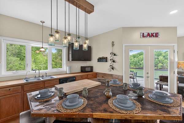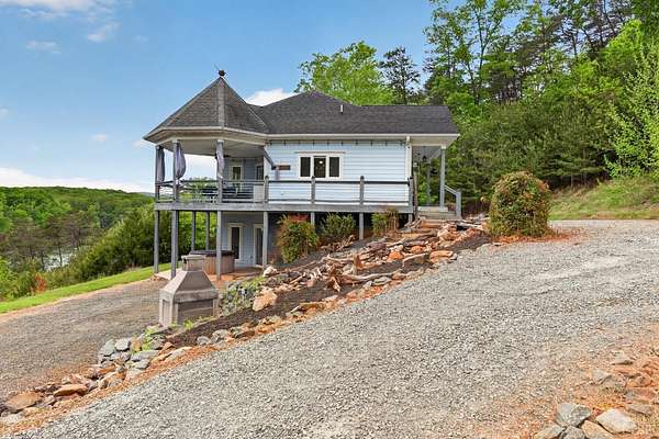 Experience this one-of-a-kind custom home on scenic Leesville Lake, offering approximately 615 feet of pristine waterfront on a private 5-acre lot. Tucked into the hillside, this thoughtfully designed home features a main-level primary suite and inviting living spaces perfect for entertaining, all with breathtaking lake views. A charming loft provides additional sleeping space, while the fully finished basement includes another bedroom and a versatile office currently used as a bunk room. Relax by the cozy gas-log fireplace or unwind with a drink at the custom wine bar. Whether you're seeking a peaceful getaway or a full-time residence, this exceptional property delivers the perfect blend of comfort, privacy, and natural beauty. Schedule your private showing today!