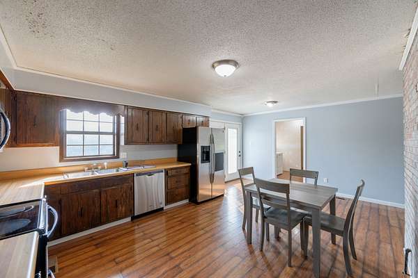 Looking for a new home? LOOK NO FURTHER! 3 bedroom, 1.5 bath brick home with tons of potential--could easily be finished into 2.5 or even 3 full baths! Location, location, location--just 10 minutes from Parsons and 20 minutes from Lexington, all with county taxes only. Inside, you'll find an open floor plan with a cozy gas fireplace, an eat-in kitchen, and stainless steel appliances that stay. The full basement offers endless storage with exterior access, while the unfinished laundry/mud room is ready to be transformed into your dream space. Plumbing and materials are already in place for an additional bathroom off the mud room. Enjoy mornings and evenings on the covered front porch, perfect for soaking in sunrises or sunsets. This property also comes with 10 unrestricted acres--mostly fenced--so bring the animals and enjoy the space. This home has so much potential to become your dream place with just a little TLC. Warm, welcoming, and in a prime spot--you don't want to miss this one!
