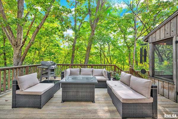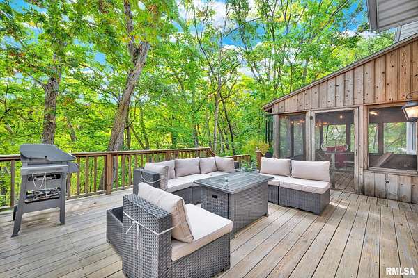 Back on the market at no fault of the seller. Step into a home that feels like a weekend getaway, every day. Nestled at the end of a quiet cul-de-sac and surrounded by mature trees, this 4-bedroom, 3-bath residence combines cozy charm with modern function. Located in the highly regarded Germantown Hills School District, this home offers both comfort and convenience for families. The main floor welcomes you with an open, sunlit living space, a family room anchored by a brick fireplace, and a beautiful kitchen that looks out into the woods. Enjoy dinner on the deck while watching the sunset through the trees, or curl up with a cup of tea in the screened porch as rain taps softly overhead. A main-floor guest bedroom and full bath make hosting easy, while the upper level offers three more bedrooms, including a relaxing primary suite with forest views and an updated ensuite bath. The open loft provides a perfect nook for reading or remote work. Downstairs, the spacious basement doubles as a home gym or creative studio, with room to grow or store. Outside, two decks and a wooded lot make it easy to forget you're just minutes from Peoria Heights and riverfront trails. Whether you're drawn to the warmth of the fireplace, the calm of the forest, or the sense of retreat that starts the moment you pull in the driveway - this home was made to be lived in, not just looked at. Recent updates - Washer & Dryer (2022), Garbage disposal (2022) & Ring Security system & Ring Door bell (2023)