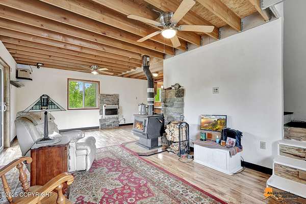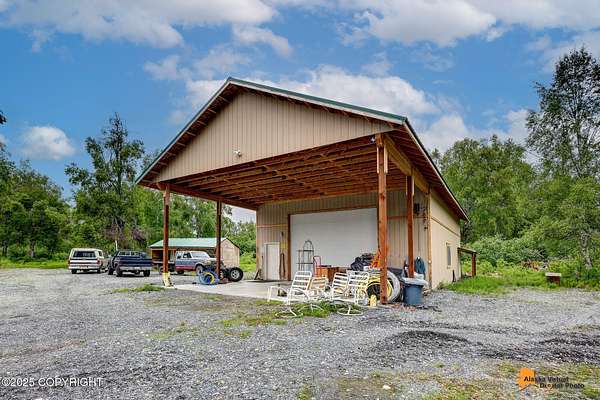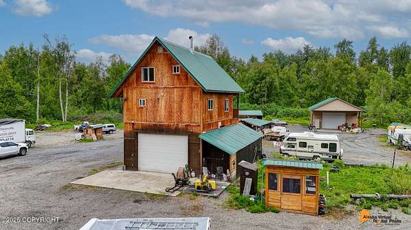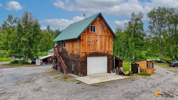 Cozy Alaskan Getaway on over 2 Acres with Bonus Shop & Garage including Solar by 907Solar. Motivated Seller! Looking for a little extra space and a lot of charm? This two-story, two-bedroom home sits on just over 2 acres and offers the peaceful feel of Alaska living with plenty of room to spread out. With nearly 1,400 square feet, respectively, it features a two large 3/4 baths, and tons of natural light.This Alaskan Rustic home features a wood burning stove, open kitchen and coffee bar area; large 3/4 bath and large laundry room on the main level. Upstairs enjoy two bedrooms, respectively; and a convenient three-quarter bath, plus jack and jill loft / reading nook. Huge garage with wood stove,and the 40 x 60 bonus shop w/carport (also with a wood stove) adds even more room for projects, hobbies, or just tinkering around. Various outbuildings to remain on property (vehicles sold separately). About 98% of old vehicles and debris are in the process of being cleared, or sold, giving you a head start on making this place your own. Whether you're dreaming of a weekend retreat or a full-time escape from the city - this property has the space, potential, and setting to make it yours. Buyer To Verify ALL Information! Property being sold as-is, where is.