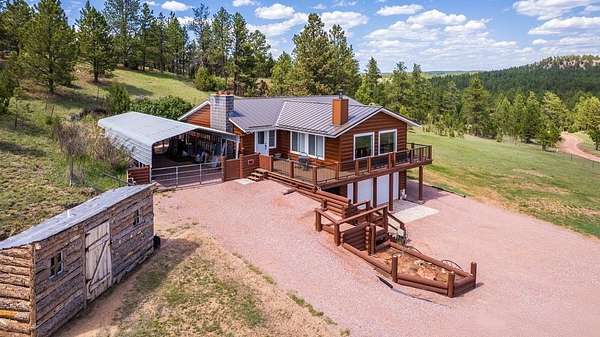HIDDEN BLACK HILLS TREASURE! Take hold of a coveted opportunity to own 40 acres of unrestricted agricultural land--ideal for horses, cattle, sheep, goats, chickens & more. With no CC&Rs, you're free to use the land as you choose: subdivide it to recapture some investment or keep the entire expanse as your own private sanctuary. The terrain offers a striking variety of mature trees, rolling hills, peaceful valleys & abundant wildlife. Enjoy endless outdoor recreation - ride horseback, explore on ATVs, or hike the scenic acreage while collecting the natural crystals found throughout this fully fenced property. This property features all that plus VIEWS, VIEWS, VIEWS! Then as a bonus, add this beautifully remodeled home! The open-concept main floor includes 2 bedrooms, 2 bathrooms w/custom tiled showers, a large kitchen & pantry, dining room, & a large new living room w/ a full 180-degree view! Windows abound bringing the outside in & cozy fireplaces beckon for you to sit a spell. Basement has a family room, 3rd bedroom, laundry room & a half bath. Plus three garages, a tool room, an oversized carport, and an RV cover with electrical hookup! For those seeking a turnkey setup, the home can be purchased fully furnished, with optional equipment including a tractor, backhoe, riding lawn mower, log splitter, and enough firewood to keep you warm for years to come. Opportunities like this are truly rare--experience the freedom, versatility, and beauty of this exceptional property!