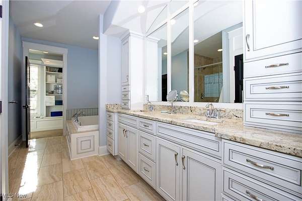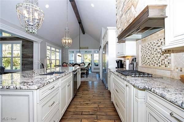- Beamed Ceilings, Bookcases, Built In Features, Cathedral Ceilings, Double Vanity, Entrance Foyer, Granite Counters, In Law Floorplan, Kitchen Island, Open Floorplan, Pantry, Primary Downstairs, Recessed Lighting, Stone Counters, Vaulted Ceilings, Walk In Closets, Wet Bar