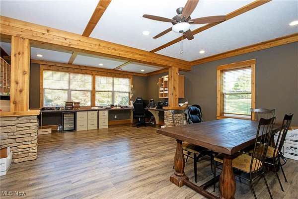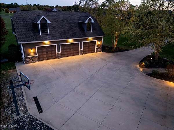 Step into luxury with this breathtaking 5 bedroom, 4 bathroom home, offering over 6,300 square feet of tastefully designed living space. From the moment you enter, the open concept floor plan invites effortless entertaining, with high end finishes and elegant details throughout. The main level is flooded with natural light and seamlessly flows from room to room ideal for both small gatherings and grand celebrations. Downstairs, the full, above grade lower level is finished to the same exquisite standard and includes: Two oversized office spaces perfect for working from home or creative studios, an additional bedroom, spacious family room, full bath, secure room, and storage area. Direct walk-out access to multi level outdoor living areas, including a covered patio and outdoor fireplace. Outside, enjoy peace and privacy on your 2.7-acre lot, complete with a serene pond view and plenty of room for activities. Car lovers and hobbyists will fall in love with the 6-car garage and the upper loft space, equipped with a freight elevator, and additional bathroom, valuable features! This is more than a home, it's a lifestyle. Homes of this caliber, with this much space and versatility, are rare. Don't miss your chance to own a true masterpiece!