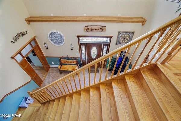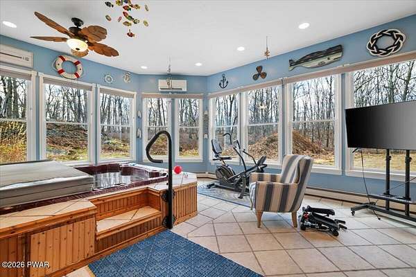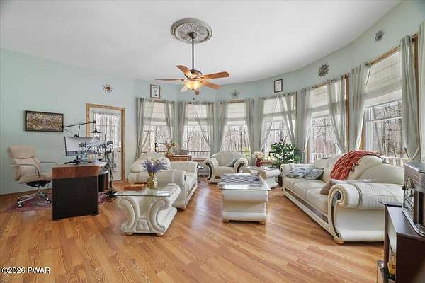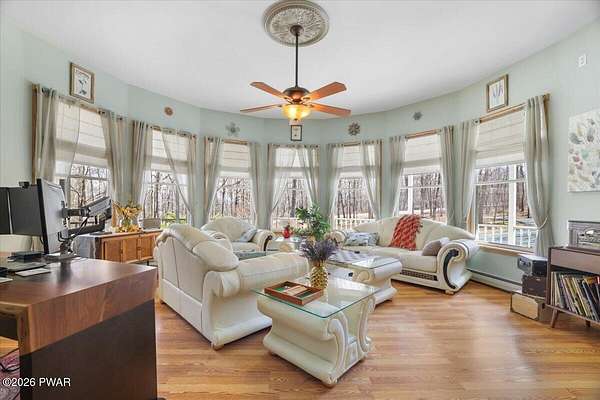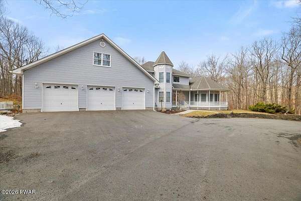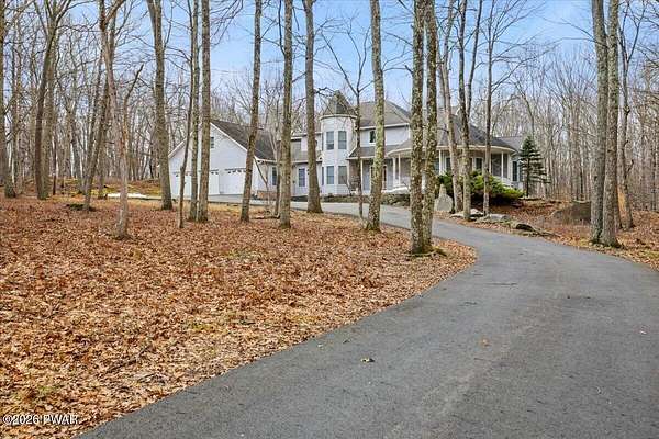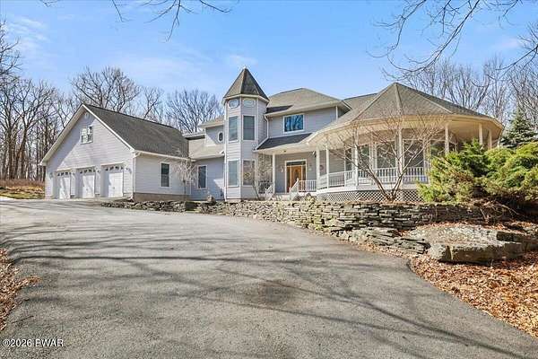Nestled on 4.5 picturesque wooded acres, this stunning Victorian offers timeless elegance and space to entertain. Featuring 4 bedrooms including a spacious primary suite with a vaulted sitting room, and 3 baths, this home blends charm with modern convenience.A grand entry hall with a sweeping staircase welcomes you in, leading to a beautiful kitchen, formal dining room, and a spacious great room with bar perfect for gatherings. Relax in the cozy living room with fireplace or unwind in the Florida room complete with a large indoor hot tub and shower.Additional highlights include crown molding, 10 foot ceilings, hardwood and tile floors, and abundant storage throughout. Enjoy outdoor living on the wraparound gazebo porch, plus an oversized 4 car garage and circular driveway.Located in Hidden Lake Estates, just one minute from Lake Wallenpaupack, this home offers privacy, luxury, and convenience all in one .Many upgrades in this home including new boiler, and water heater, hot tub motor and new control panel, Mitsubishi Mini Split system, Generac whole house generator, All bathrooms have been remodeled and so much more. See complete list in documents
