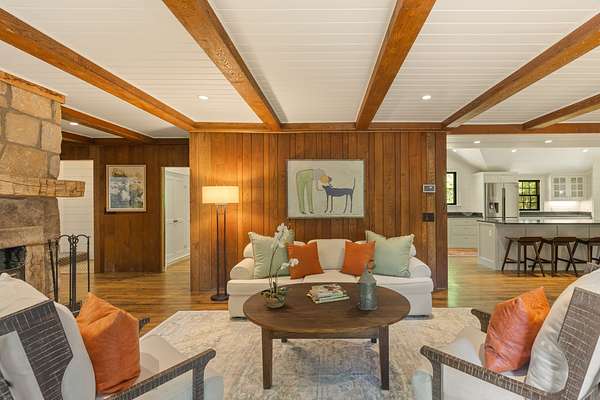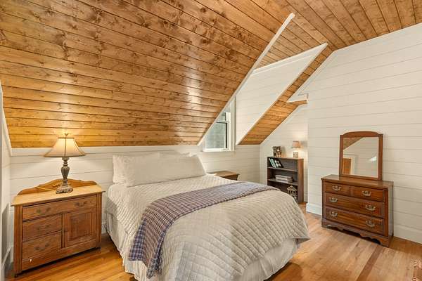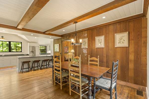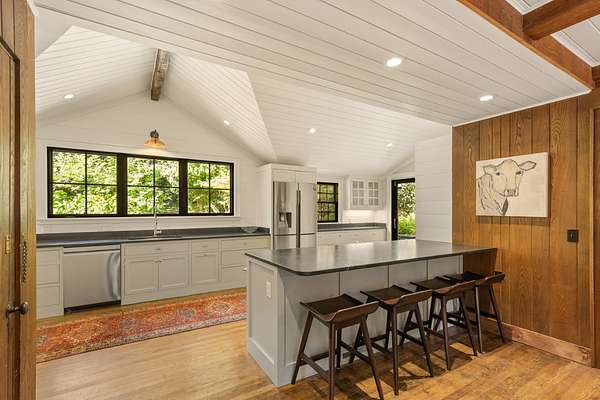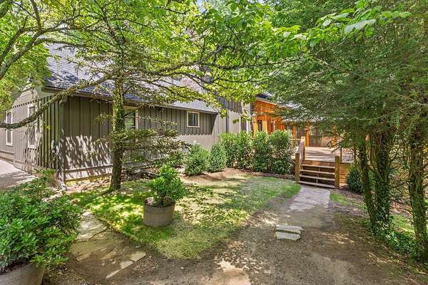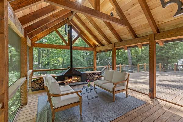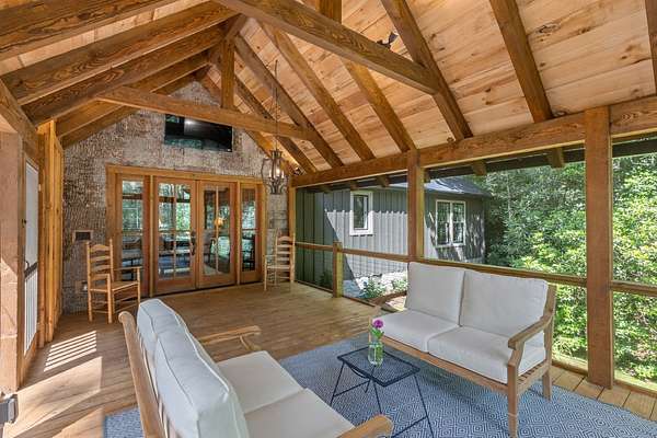 Situated on just over 10 private acres and only minutes from downtown, this timeless 1936 farmhouse has been thoughtfully expanded and renovated to blend modern convenience with the nostalgic charm of old Highlands. Surrounded by native trees, lush landscaping and meandering trails, the property sits at 3795' elevation and also features a flowing creek and an open meadow with a charming party barn. The home welcomes you with a spacious open deck and a cozy screened-in porch featuring an outdoor, flush hearth custom fireplace, perfect for mountain evenings. Inside, the new kitchen is a dream for home chefs, offering generous space and functionality, while the updated bathrooms reflect quality craftsmanship and modern style. A spacious mudroom/laundry area with a second refrigerator and additional storage adds extra practicality for everyday living. The layout offers privacy and comfort, with the primary suite tucked away on one side of the home, complete with access to a stone patio and a cozy den with walls of rare wide plank wormy chestnut, separating it from the main living space. On the opposite wing, you'll find two guest bedrooms, a small bunk room, and an additional full bath. Upstairs, is a fourth bedroom, another full bathroom and a bonus room which provides flexible space for guests, hobbies, or home office needs. With no restrictions (including rental), this one-of-a-kind property is a true Highlands gem whether you're seeking a full-time residence, vacation home, or investment opportunity.