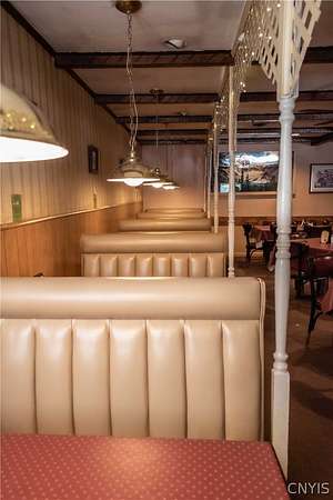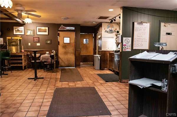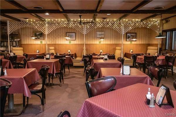 Presenting a rare opportunity to acquire a beloved, long-standing dining establishment - Garramone's Restaurant - a destination restaurant known throughout the region for its authentic Italian cuisine, warm hospitality, and decades of community tradition. Situated on a spacious property with excellent visibility and ample parking, this well-maintained restaurant offers a turnkey opportunity for an owner-operator, hospitality group, or investor looking to step into an established and recognizable brand. The expansive dining area comfortably accommodates large volumes of guests, while a dedicated bar area and private event space create multiple revenue streams for banquets, parties, and special events. The fully equipped commercial kitchen supports high-volume service and a wide menu offering-from classic Italian favorites to steak and seafood specialties-allowing a new owner to continue the successful concept or introduce their own culinary vision with ease. The 2 bedroom efficiency apartment is attached to the rear of the building providing the ideal set-up for management, chef or owners use. With a loyal customer base built over generations and a reputation as a regional dining staple, this property benefits from steady local traffic along with seasonal visitors drawn to the surrounding Adirondack region. The generous lot size also offers potential for expanded outdoor dining, events, or future development. Opportunities to purchase an iconic restaurant with this level of recognition and built-in clientele are rare. Whether continuing the legacy or elevating the concept further, this property offers exceptional potential for long-term success.