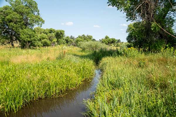 The ranch harvests hay on 200 acres of dryland and sub-irrigated meadows. The balance is grazing land. The ranch holds rights on the East Cherry Creek Alluvium to irrigate and has an irrigation pond and irrigation equipment, though not currently in use.