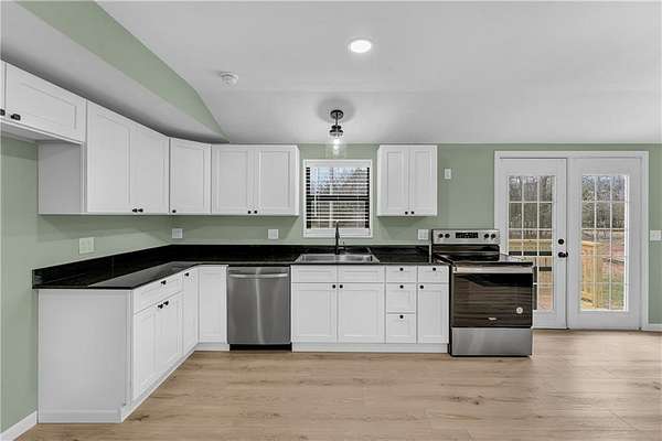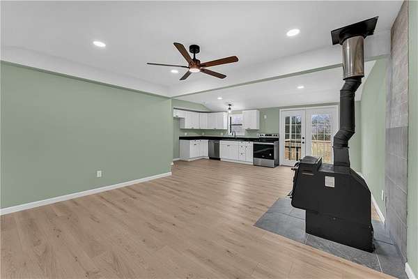 Fully renovated 3-bedroom, 2-bath home on 3.8 private acres, offering turnkey living where nearly everything is basically new. This 1,360 sq ft home has been completely redone, including a brand-new roof, fresh interior and exterior paint, new kitchen cabinets, and all new fixtures, vanities, bathrooms, and lighting throughout. The open living area features a wood-burning stove, adding warmth, charm, and efficient supplemental heat. Both bathrooms have been fully updated, and all bedrooms feature fresh finishes and modern lighting. Outside, enjoy three new exterior decks, perfect for entertaining or relaxing while taking in the acreage. With extensive renovations inside and out, this property offers the peace of mind of a home that feels nearly new--without the new construction price--plus the space, privacy, and flexibility that only acreage can provide.