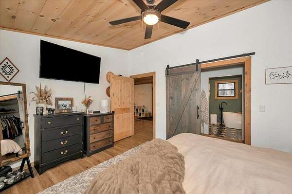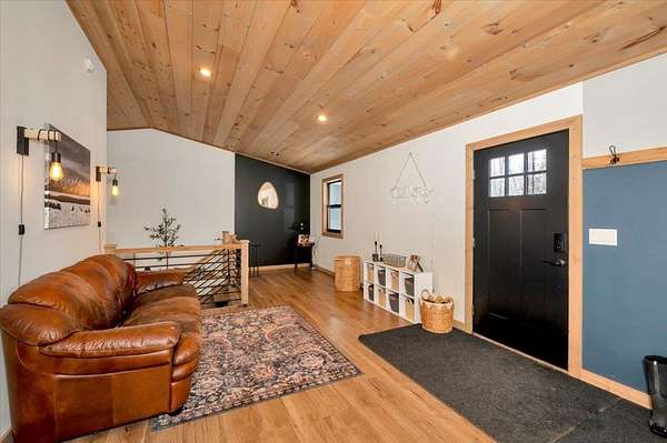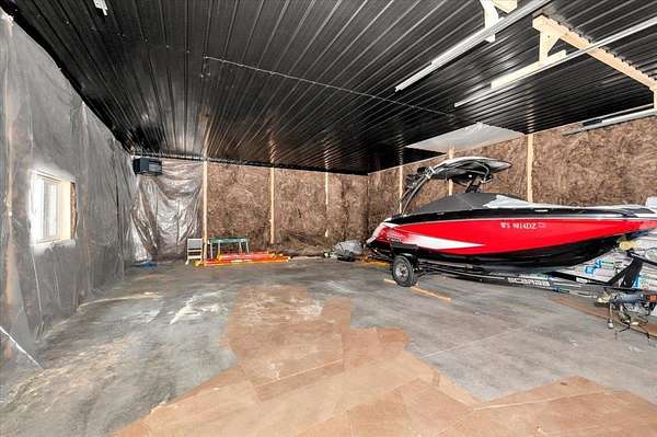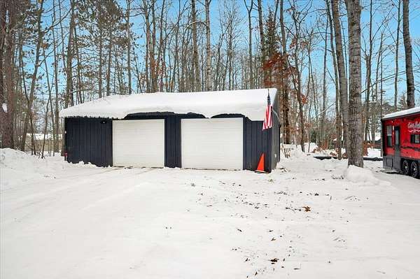 Discover contemporary Northwoods living in this raised ranch home at 11775 S Hillside St, Solon Springs, WI--steps from the lake and just a 30-45 minute drive from Duluth! On 1.6 acres with landscaped grounds: 3 apple trees, fenced garden, concrete patio, and expansive yard for outdoor fun.Built in 2018, it features a functional layout. Walk-out lower level: open kitchen/living combo ideal for gatherings. Updates include tile backsplash, floating shelves by fridge, custom pantry shelving. Plus, bedroom, 3/4 bath with tiled shower, and utility room with washer/dryer.Upper level: inviting living area, 2 bedrooms. Primary suite has full bath with soaking tub; second bedroom is spacious. In-floor natural gas heating throughout, with modern finishes evoking Northwoods style.Exterior: metal roof, metal siding (one wood side), fresh front stain, back deck, front/back gutters. Circle driveway with new gravel. Garages: Insulated 24x32 detached with openers, propane heat. New 32x40 pole building: 12ft walls, natural gas heat, slab, power, two 10x10 doors. Includes 10x24 tarp garage near garden.The area offers endless recreation: hike the historic North Country Trail or, enjoy fishing/swimming at Lucius Woods County Park, or explore nearby Amnicon Falls State Park. Perfect mix of modern updates and serene charm! Come Make this house Your Home - Set up a private showing TODAY! 3D tour https://unbranded.youriguide.com/11775_s_hillside_st_solon_springs_wi/