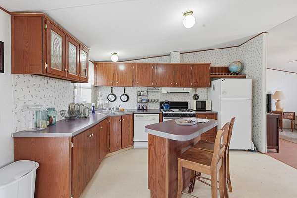 Est $1,175/moEnjoy peaceful country living on 2.78 acres with ditch irrigation! This Oakwood doublewide mobile home offers 1,180 square feet of comfortable living space with 3 bedrooms and 2 baths. The living room features a vaulted ceiling that creates an open, airy feel, while the spacious kitchen includes a center island and ample cabinet space--perfect for everyday living and entertaining. Set in a serene rural setting with plenty of room to enjoy the outdoors, garden, or simply take in the wide-open views, this property offers space, privacy, and potential.