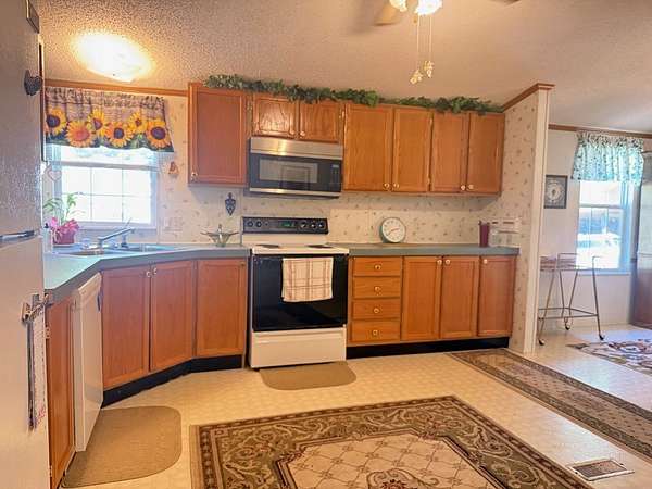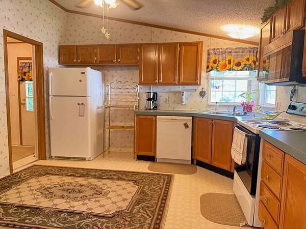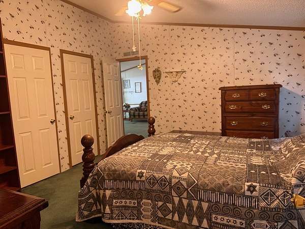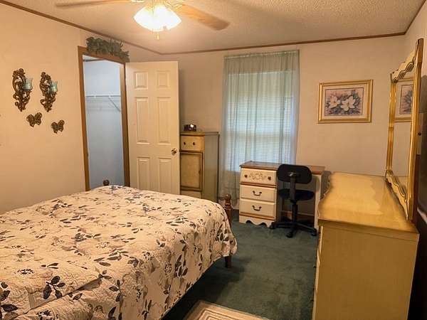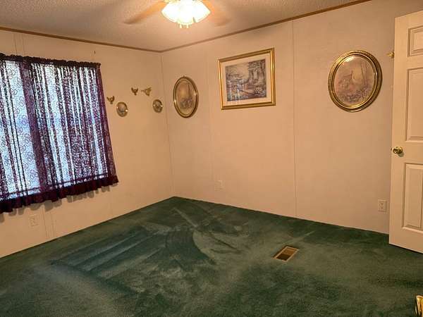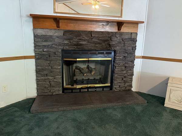 Welcome to this 1997 doublewide home offering 1,456 sq. ft. of comfortable living space on an expansive 30.65-acre property. This 3-bedroom, 2-bath home features a desirable split-bedroom floor plan and is ready for your personal touch. Step into the living room with cozy gas fireplace, carpet flooring, and ceiling fan. The dining room offers vinyl flooring and flows into the kitchen equipped with an electric range, dishwasher, refrigerator, ceiling fan, and plenty of space for meal preparation. The utility/mud room includes vinyl flooring and washer/dryer hookups for added convenience. The primary bedroom features carpet flooring, a double closet, and ceiling fan, along with a private en suite boasting vinyl flooring, shower, and vanity. Bedrooms #2 and #3 both include carpet, walk-in closets, and ceiling fans. Enjoy peaceful mornings on the covered front porch. The home also features gutters, public water (plus a working well), a private septic system last pumped in 2022, an owned propane tank, a new roof in 2024, a Trane heat pump approximately 10-11 years old, and is on permament foundation. Internet is provided by Point Broadband. The attached 2-car carport adds convenience. Outbuildings include a detached structure with electric (sold AS-IS) and a barn with electric, 4 stalls, feeding room, and loft. The property offers creek frontage, pasture area, garden space, and a gas well road. This unique property combines acreage, usable land, and comfortable living-perfect for those seeking space, privacy, and rural charm.