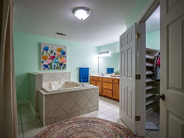 - Blinds, Ceiling Fan(s), Granite Countertops, Jetted Tub, Sunken Tub, Walk-In Closet(s), Workshop