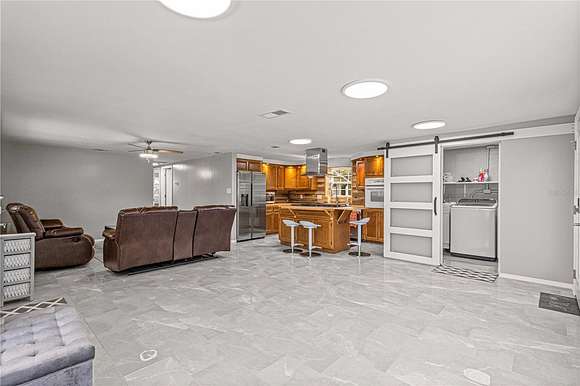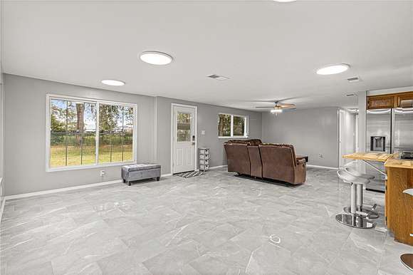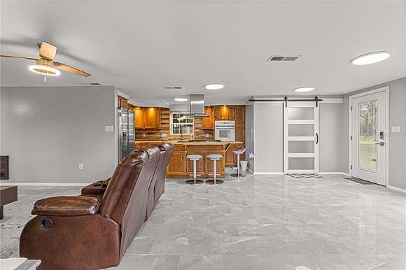 JUST REDUCED $35,000.00 ,SELLER FINANCING WITH 20% DOWN . MOVE IN READY, JUST LIKE NEW! BEAUTIFUL PIECE OF PROPERTY ZONED A-1 IN FLORIDA HIGHLANDS,THIS PROPERTY IS 2.49 ACRES JUST A FEW HUNDRED FEET OFF SR 200. SELLER HAS GONE TO GREAT LENGHTS TO REMOVE JUST THE RIGHT AMOUNT OF TREES TO MAKE THIS PROPERTY FULLY USABLE. HOME FEATURES THREE BEDROOMS AND ONE BATH THAT HAS BEEN FULLY REMODELED. HOME ALSO HAS ALL UPDATED TILE FLOORING. ALL THREE BEDROOMS HAVE CLOSETS,UPDATED CEILING FANS WITH LIGHTING, PLUS UPDATED CEILING LIGHTS.THE BATH HAS BEEN FULLY UPDATED WITH NEWLY TILED WALK IN SHOWER FEATURING DOUBLE SLIDING GLASS DOORS, NEW SHOWER FIXTURE,NEW TOILET, NEW VANITY AND SINK, PLUS UPDATED LIGHTING AND TILE FLOORING. LIVING ROOM IS VERY SPACIOUS AND HAS PLENTY OF ROOM FOR A LARGE BIG SCREEN TV. THE KITCHEN FEATURES WOOD CABINETS, SIDE BY SIDE REFRIGERATOR, NEW FARMERS STAINLESS KITCHEN SINK, A WALL OVEN, PLUS A CENTER ISLAND WITH WORKSPACE AND A 6 BURNER KITCHEN AID GAS STOVE TOP. TAKE A LOOK AT THE UPDATED INSIDE LAUNDRY ROOM WITH WASHER, DRYER, LAUNDRY TUB, AND ELECTRIC WATER HEATER. YOUR NEW HOME COMES COMPLETLY FURNISHED, EVERYTHING STAYS! EXTERIOR FEATURES INCLUDE A 20X8 STORAGE SHED, A SMALL RUBBERMAID SHED, PLUS A NEW 10X10 GAZEBO WITH METAL ROOF AND COMPOSITE DECKING. ENTIRE PROPERTY HAS EITHER WIRE OR CHAIN LINK FENCING. FRONT GATE IS ELECTRIC AND ALSO HAS REMOTE SO IT CAN BE OPENED AND CLOSED WITHOUT GETTING OUT OF YOUR CAR.NEW WINDOWS INSTALLED IN 2020, NEW ROOF IN 2022, WELL BLADDER ALSO UPDATED.