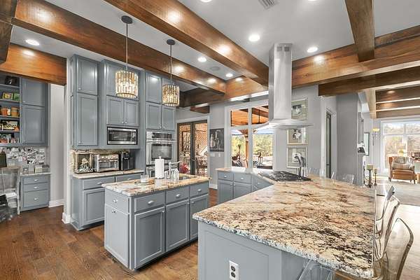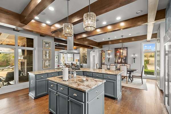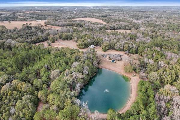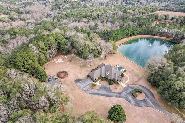 Experience the perfect blend of elegance, privacy, and functionality on this breathtaking 72 acre estate just 9 miles from the Circle. The property features a creek, gated paved drive, and two fully equipped residences designed for both refined living and recreation. The main home is thoughtfully designed for entertaining and everyday comfort. A grand room with fireplace flows into the kitchen and formal dining area, all overlooking the pond and outdoor living spaces. The chef's kitchen offers a large pantry, built in desk area, and easy access to a well designed mudroom with abundant storage. The main level includes two bedrooms with 3 full baths, one half bath, a sauna, and a versatile flex space ideal for an office, gym, or media room. Upstairs are three additional bedrooms, two full baths, a bonus room, and walk in attic access. Equestrian enthusiasts will appreciate the impressive barn featuring multiple horse stables and a dedicated tack room, with a beautifully finished guest residence above offering a full kitchen, living area, built in bunk room, full bath and laundry/mud room. Additional highlights include a full house generator and separate wells servicing both homes, the sprinkler system, and the pool. A rare opportunity to own a private estate where luxury living and equestrian lifestyle come together.