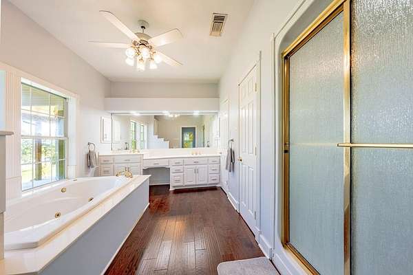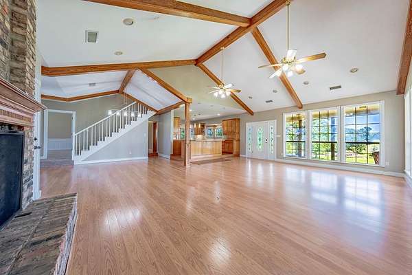 GB-9158 Discover a peaceful slice of country heaven with this unique lakeside property! You'll enjoy the best of both worlds--approx. 0.88 acres of unrestricted land perfect for your boat, RV, or future shop, paired with an additional 0.91-acre homesite within Caddo Creek Estates that offers the comfort of community amenities. This inviting 3-bedroom, 3-bath home also features two versatile bonus rooms--ideal for a home office, game room, or extra guests. Take in panoramic water views from nearly every angle, overlooking Caddo Creek Lake, a clear, spring-fed lake that sets the scene for sunrise coffee or winding down with the sunset. A wrap-around porch embraces the home, creating the ultimate outdoor space for relaxing and taking in the country air. Step inside to spacious open-concept living with vaulted ceilings, natural light and three charming wood-burning fireplaces for cozy nights. The upgraded kitchen is bright and functional with a central prep island and separate breakfast bar, giving you plenty of space to cook and gather. The primary suite provides a private retreat with ensuite bath featuring dual sinks, separate closets, and a soothing jetted tub. Outside, the beautifully maintained grounds create a park-like feel with multiple seating areas, a workshop, and even an aviary--perfect for nature lovers. Whether your heart is set on a weekend escape or a serene full-time residence, this property delivers comfort, character, and captivating lake views all in one. Come experience this country gem for yourself!