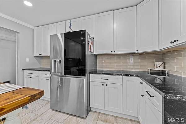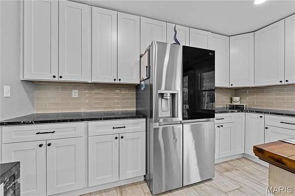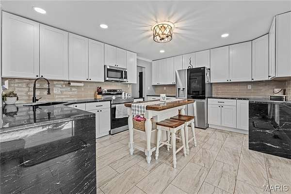 The property includes both an oversized attached garage and a detached pole barn, creating opportunities for extra storage, offering plenty of space for hobbies, or a workshop. Step inside to discover a fully remodeled kitchen featuring stunning waterfall granite countertops, white slow-close cabinetry, stylish backsplash, tile flooring, and a convenient breakfast bar perfect for everyday living and entertaining. Recent updates throughout the home include new carpeting in bedrooms, solid wood doors, updated lighting, fresh paint, and a remodeled half bath/laundry room. Enjoy outdoor living at its best with a spacious covered patio, ideal for relaxing or hosting gatherings, along with a 6-foot cedar privacy fence for added seclusion.