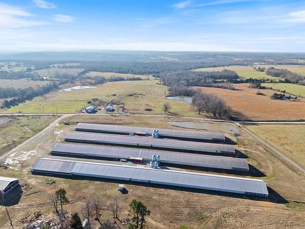 This impressive farm delivers a solid income opportunity with four 50' x 550' broiler houses built in 2015, each constructed with monolithic poured concrete floors that are twice the standard thickness for added strength and longevity. All required upgrades are complete, with the exception of a backup water system. A 2024 double-wide home offers comfortable, modern living with 4 bedrooms, 2 bathrooms, and is set on a permanent foundation. The land features a scenic blend of open Bermuda pasture, a fully stocked pond, and mature woods--approximately 90% mixed hardwoods. With plentiful wildlife, including turkey and trophy whitetail deer, this property is also a sportsman's dream.