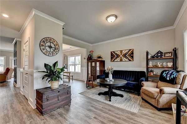 Welcome to your own hidden retreat, set on nearly 2.5 acres and tucked away from the road for a peaceful, private setting. A long drive leads you beyond the ordinary to a property that truly opens up once you arrive-offering space, comfort, and exceptional outdoor living. Inside, you'll find a warm and inviting layout with LVT flooring throughout most of the main level, a welcoming foyer, formal living and dining rooms, and a spacious family room featuring a shiplap fireplace with a custom reclaimed barn wood mantel. The kitchen is the heart of the home, complete with granite countertops, stainless steel appliances, a large island, and a farmhouse sink-perfect for gathering and entertaining. Offering 5 bedrooms and 3.5 baths. A main-level bedroom with a private full bath provides flexible living options. Upstairs, the oversized primary suite offers a generous closet, while the secondary bedrooms are spacious with excellent storage. The upstairs laundry room adds everyday convenience. Step outside and experience what makes this property truly special. The private backyard setting features a saltwater pool with security fencing, oversized concrete decking, and a cozy fire pit area-ideal for relaxing evenings or hosting guests. A fenced yard, workshop with electricity, chicken coop, and open acreage provide room to spread out and enjoy a variety of outdoor activities. If you've been searching for privacy, space, and a property that offers more than meets the eye, this is one you won't want to miss. Located just minutes from downtown Social Circle and Monroe with easy access to Hwy. 11, yet offering a peaceful setting that feels worlds away. Located in zone 5 with choice of schools. This is a must see. NO HOA