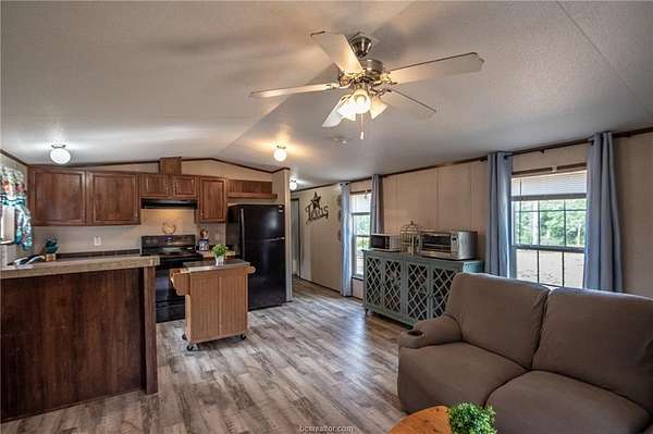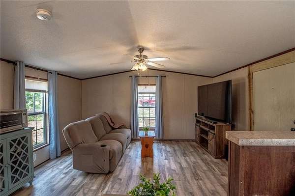 Escape to the peace and privacy of this adorable home nestled on over 5 1/2 acres in the countryside of Rockdale and on the edge of Caldwell. Situated on a corner, there is an abundance of road frontage allowing for multiple homesites. This unrestricted property offers tons of possibilities, making the current home your main homestead, weekend retreat, or as an investment to build next to it and having a rental or another home for a family member. The manufactured home is in the original location and is in amazing condition! It features central a/c, an open layout, and cozy charm. Outside enjoy a combination of cleared and wooded trails throughout, perfect for livestock, fair project, gardening, or simply relaxing while watching the local wildlife roam. There is also a RV hookup with a 50 amp. Storage buildings will also convey. Located within Rockdale ISD, this property checks a lot of boxes!