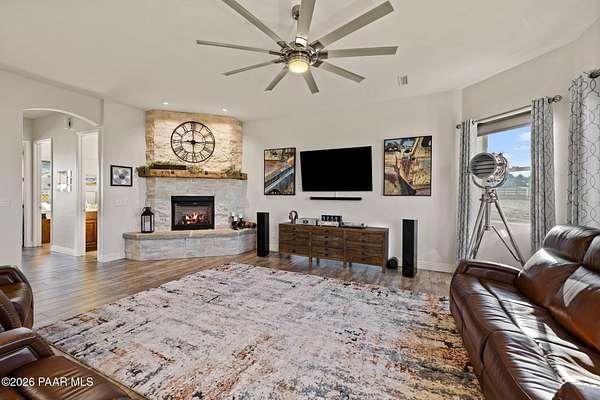 Imagine waking up every day in a stunning 3-bedroom, 3-bath oasis that feels like a retreat! Nestled in the serene Williamson Valley Ranch, this beautifully designed home offers 2,6007square feet of spacious living, combining modern luxury with the warmth of a welcoming rural neighborhood. Enjoy an inviting open-concept design, where the living room flows seamlessly into the dining area and chef-inspired kitchen that proudly displays quartz counter tops and stainless-steel appliances, ample counter space providing both style and functionality for culinary enthusiast. The stunning stone fireplace serves as a beautiful focal point in the living room. Retreat to your expansive primary bedroom, complete with an ensuite bathroom featuring dual sinks, a jetted tub, and a spacious walk-in shower. The two additional bedrooms provide comfort and privacy for family or guest. Step outside to your beautifully landscaped back backyard, where the pergola defines the perfect space for year-round enjoyment. Pet lovers will appreciate the fully enclosed dog run, providing a safe and secure space for your furry family members. Nestled in the desirable Williamson Valley Ranch community you'll enjoy a tranquil setting with easy access to scenic trails, parks and outdoor activities while being conveniently near all amenities. This property is more than just a home; it's a lifestyle waiting for you to embrace. Don't settle for anything less than your dream home- this property has everything you need and more! Schedule your private showing today and stary living the Williamson Valley dream!
