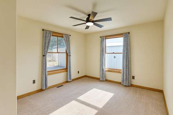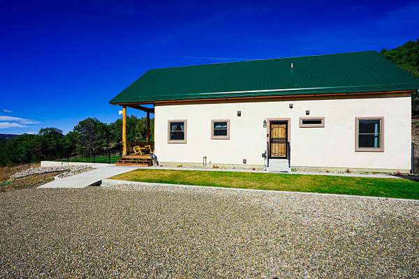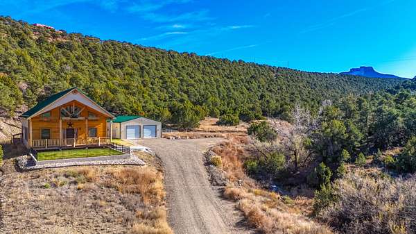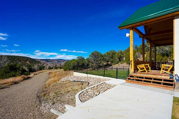 This newer custom-built home is perfectly situated just outside the historic city of Trinidad, offering both convenience to town and the privacy of 12 acres. Surrounded by trees and natural beauty, the property boasts stunning views of the Sangre de Cristo and Spanish Peaks mountain ranges as well as Fishers Peak. Inside, you'll find custom hardwood floors, a striking log banister, and spacious bedrooms, including a master suite with a huge walk-in closet. The open upstairs area provides flexible space for a family room, office, 2 additional bedrooms, or entertainment, while the kitchen is designed for both style and function with granite countertops, a pantry, and stainless steel appliances. Outdoors, the fenced yard is ideal for dogs, and the oversized two-car garage includes an office area and a convenient entryway for pets. This home combines modern comfort with rustic charm, making it a perfect retreat for those seeking seclusion without sacrificing proximity to town.