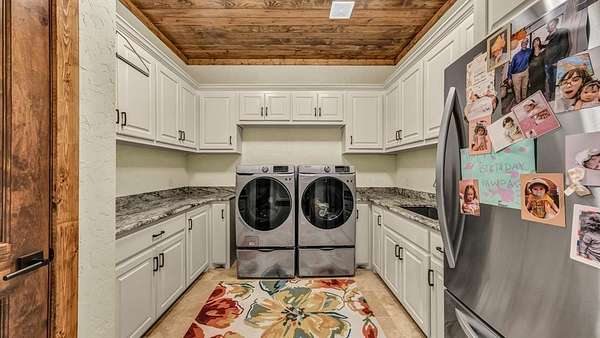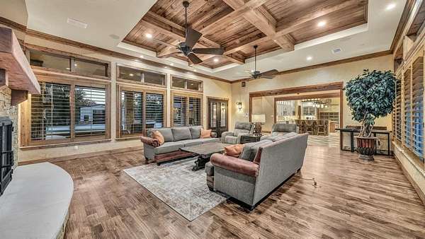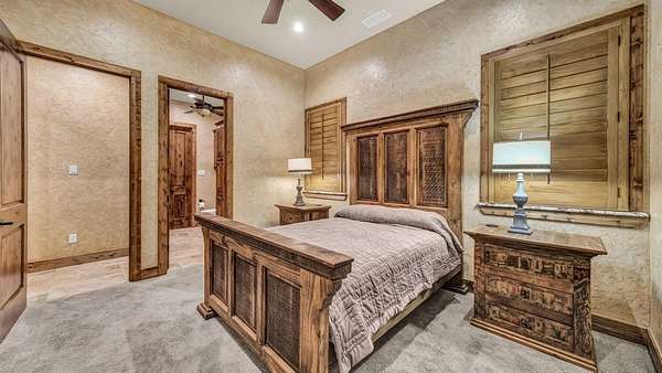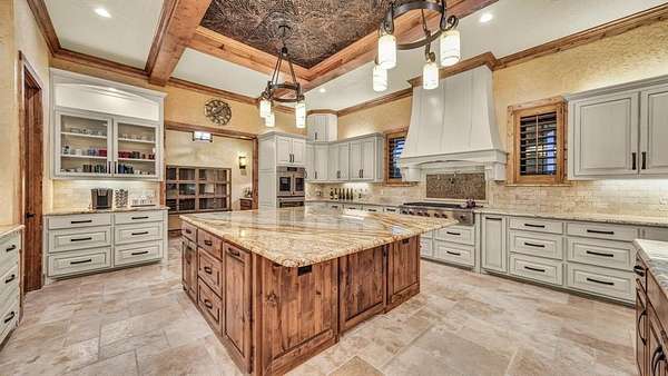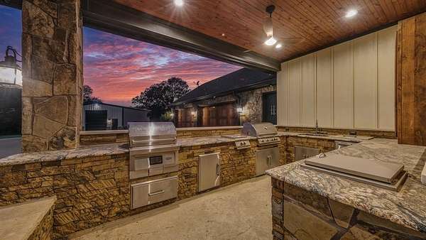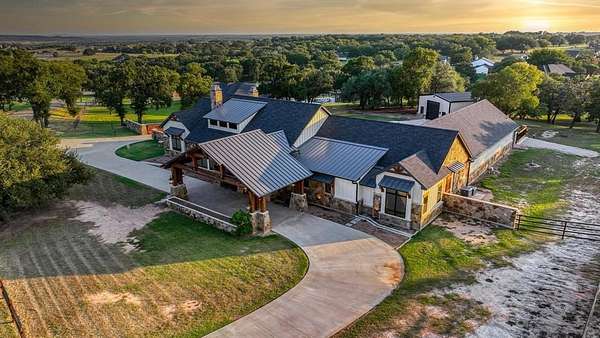 Welcome to 117 Hansma Way, a breathtaking custom ranch estate in the gated Bar H Ranche community of Weatherford. Set on 2 ACRES of picturesque Parker County land with mature trees and full PIPE fencing, this property captures the heart of horse country living with true Big Texas energy. Every aspect was crafted with care and precision. Meticulously maintained and still presenting like new, this retreat is designed for comfort, beauty, and peace of mind. The residence offers nearly 4,809 square feet with 4 bedrooms, 4 full baths, and 1 half baths, plus a full bath in the 30x40 workshop. Interiors showcase hand-scraped hickory wood floors, travertine tile, masonry fireplaces, and onyx lighting. HEATED bathroom floors add luxury, while wide hallways, handicap rails, and wheelchair-friendly design provide accessibility. A private MOTHER-IN-LAW SUITE with private living room offers space for guests or multi-generational living. The gourmet ENTERTAINING kitchen is both elegant and practical, featuring an oversized island, double ovens, warming oven, gas stove, two dishwashers, two sinks, wine cooler, and walk-in pantry. Built with integrity, the home includes 2x6 insulated walls, insulated ceilings and interior walls, Class 4 hail-resistant shingles, a 40-45 kW Generac GENERATOR, 1,000-gallon buried propane tank, three zoned HVAC units, and a tornado-rated safe room with 14-gauge steel walls. Even the garages, attic, and workshop were insulated and finished with care. Two oversized 2-car garages with epoxy floors, EV charger, custom storage, and a porte-cochere are paired with a 30x40 insulated WORKSHOP with full bath. Outdoor living shines with a covered kitchen including grill, pellet smoker, refrigerator, sink, and burner, plus an expansive patio with fireplace. Every inch of this estate reflects craftsmanship, foresight, and pride of ownership, offering a rare opportunity in one of Weatherford's top small-acreage luxury communities. More details at 117hansmaway.info