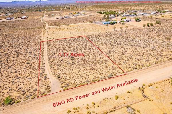 Est $255/mo1+ acre parcel with power and water available that goes down Bibo rd in front of the property. Property is on a county maintained road located less than a quarter mile from paved roads. Conveniently located close to Hwy 68 and Hwy 93 allowing less than 10 minutes to Kingman, and around 30 minutes to Bullhead City, Laughlin, and the Colorado River. Owner will carry with a down payment. Connecting 1 acre lot is also available for sale by the same owner.