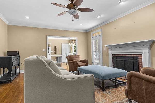 This spacious home in West Lee County's desirable CALLAWAY LAKES subdivision sits on a beautifully wooded 3.23-acre cul-de-sac lot with an in-ground pool and endless potential. Offering over 3,200 sq. ft., this 4 bedroom + large bonus room (or 5th bedroom), 4.5 bath home is ready for its new owner! Inside, you will find an inviting foyer, a formal living room/office with built-ins, a spacious dining room, and a great room with wood-burning fireplace and access to the sunroom. The kitchen features Silestone countertops, tile backsplash, an island, and a breakfast nook overlooking the backyard and pool area. The downstairs master suite includes a separate shower and large whirlpool tub, while upstairs offers 3 bedrooms, 2 full baths, and a HUGE BONUS ROOM with dual staircases for convenience. The backyard features an 18x36 saltwater pool, oversized patio space, mature landscaping, and fruit trees--perfect for outdoor entertaining once refreshed. Additional highlights include: 2-car garage, abundant storage throughout (including walk-in attic space), crown molding & beautiful wood floors in most of the downstairs. This home is in need of some TLC and is priced to SELL. This is your chance to own a large home on acreage in one of Lee County's most sought-after neighborhoods! Call to schedule a showing today!
