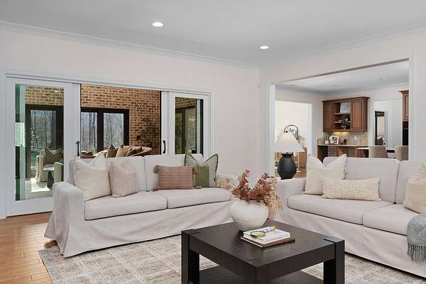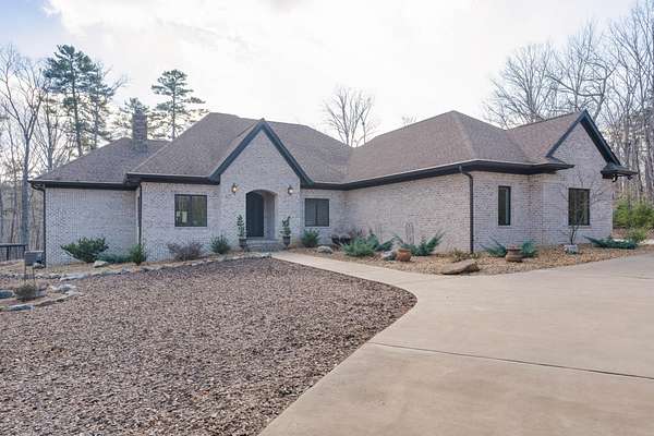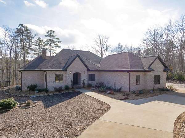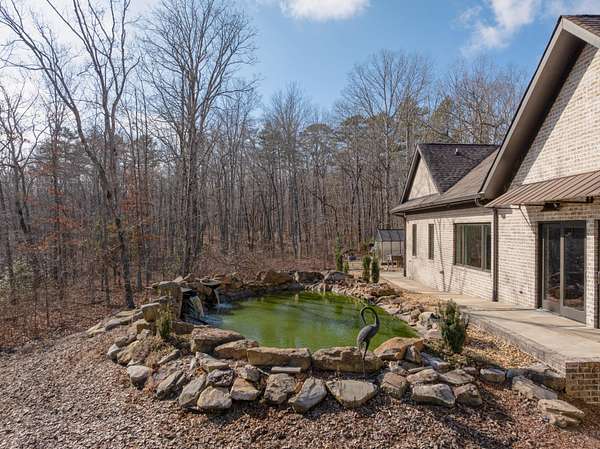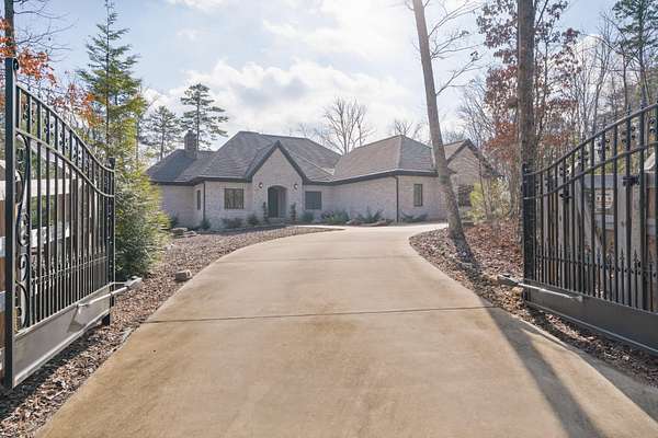 All brick home with a coveted private setting including a gated entry and an extra lot in the desirable Grandview neighborhood on Signal Mountain. This one-level 3 bedroom, 2.5 bath home with a 3-bay garage was built in 2019 and boasts premium finishes and a fantastic floor plan for both entertaining and everyday living and is positioned on a 5.11+/- acre lot. The second lot is wooded and provides an additional 5.44 +/- acres for a total of 10.55 +/- acres. Soil testing has just been completed - build a second house, keep it natural for the privacy or add additional green space for kids or pets - you choose! This custom home offers so many desirable features, including tall ceilings, hardwoods and crown molding throughout, recessed and decorative lighting, clad windows with retractable screens, granite countertops, custom cabinetry, convenient closet systems, central vacuum, whole house water filtration system, a generator, and wonderful outdoor features such as a Koi pond with waterfalls, a wonderful spot for your firepit and outdoor seating area, a green house, a chicken house/coop and professional landscaping. Your tour begins with entry to the foyer via beautiful metal and glass front doors. The foyer opens to a spacious great room with a stone, wood burning fireplace with a gas starter and built-ins on either side. The formal dining room is just down the hall, and it has access to the office which can be closed off via pocket doors. Sliding interior doors lead to a rear family room with a vaulted ceiling, brick walls and a woodburning stove. This room overlooks the water feature and is also accessible from the breakfast room. The breakfast room is light-filled and opens to the gourmet kitchen with an oversized center island, granite countertops and backsplash, soft close and pull-out drawers, drawers, under-cabinet lighting, gas cooktop and convection double wall ovens, a pantry and a built-in beverage center.
