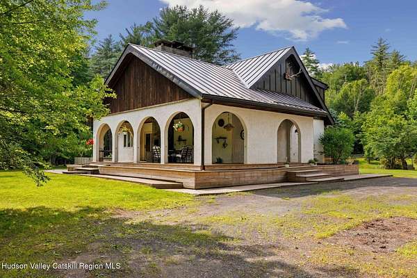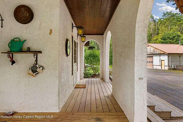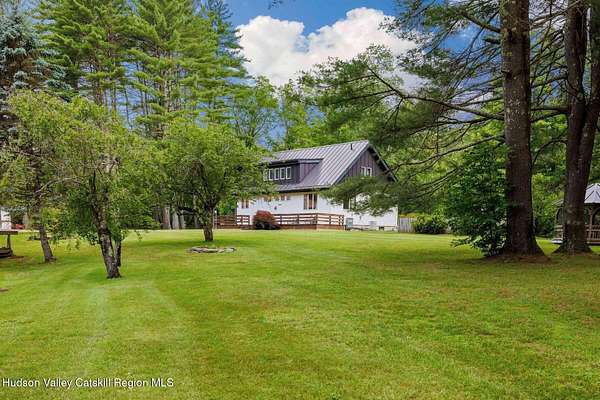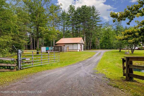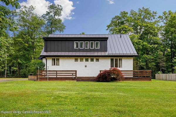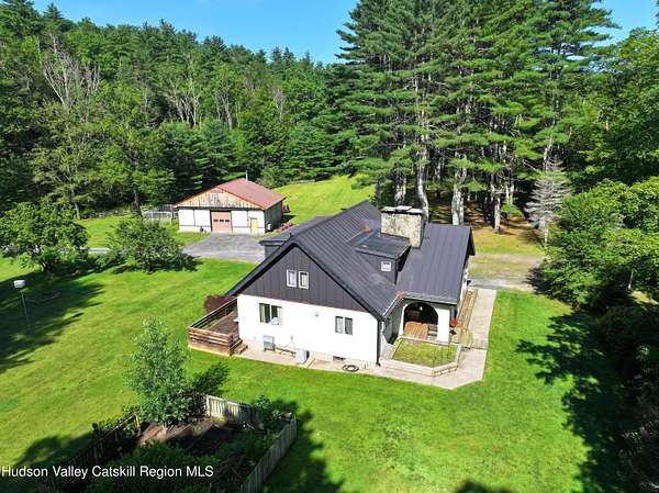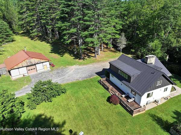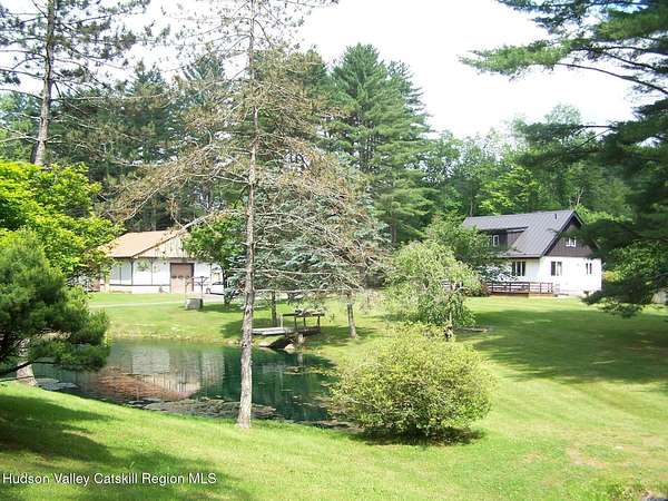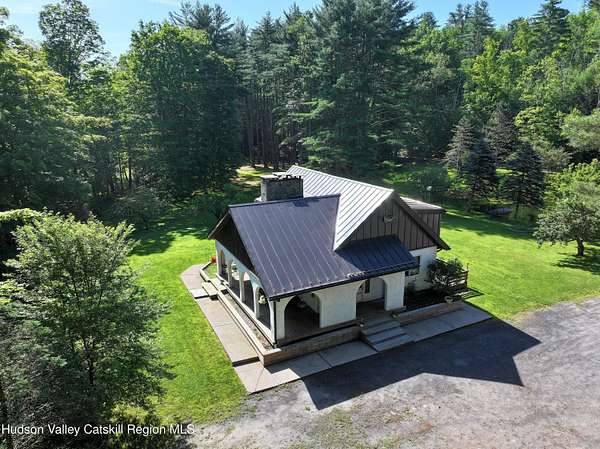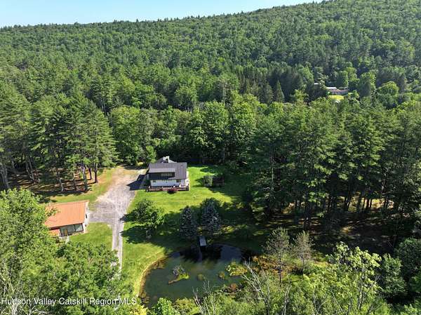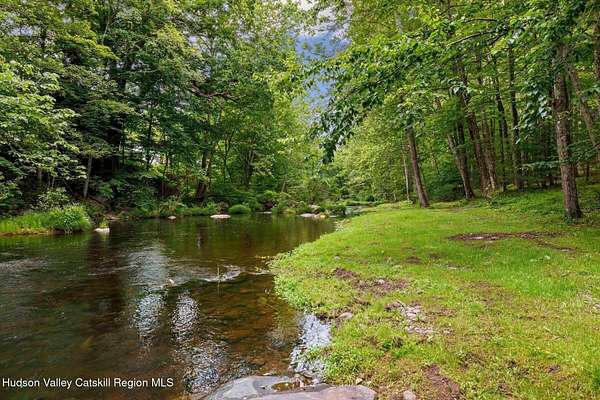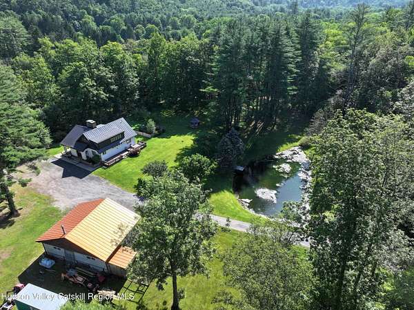 Welcome to an undiscovered area known as Napanoch, NY. Here you will find this amazing stream side contemporary home, located on 28 acres and built by a master cabinet maker for his young bride. Health issues are forcing the sale of this dream home and all offers will be considered, even owner financing with half down. When you leave the town road and head back this quarter of a mile driveway you can sense just how special this home site is. With roughly 2,100' of Rondout Creek frontage and 1,900' of town road frontage the possibilities here are endless. Sitting by the creek is a unique contemporary home with two ground floor bedrooms. Upstairs you'll find the third bedroom and a large game room, complete with its own wet bar! The two-story stone fireplace in the living room made of Fools Gold will mesmerize you. The 30 x 42 four car garage will impress you as well, and it even has room for all your toys. The extensive road frontage will allow for the ultimate compound if desired. The creek frontage is just gorgeous and so peaceful while sitting on the covered back porch. The home was built like a fortress and sits safely out of the flood plain, looking down on the creek. New standing seam metal roof on both buildings! Check out the interior 'paint' and be amazed to find out it's really wallpaper. A 3D Walkthrough Tour is available in the digital Lookbook or by request from the listing agent.