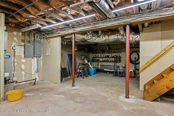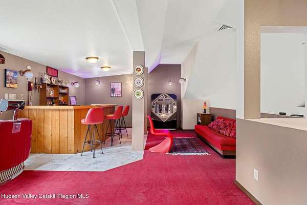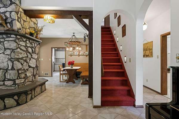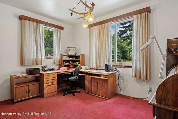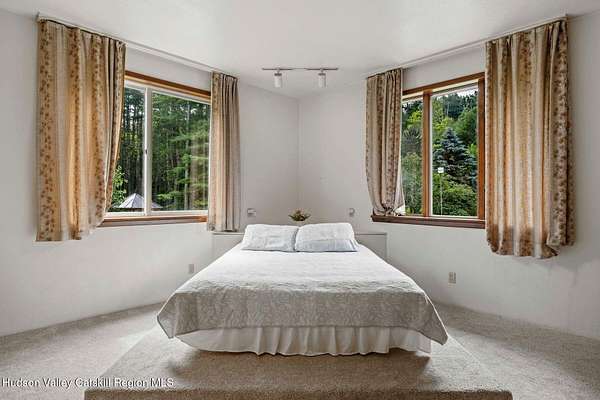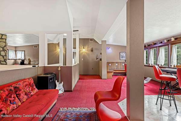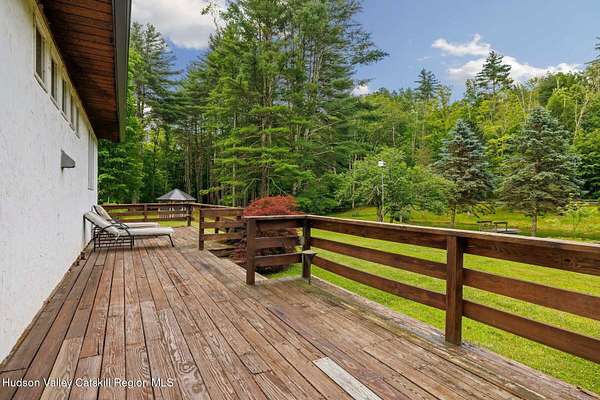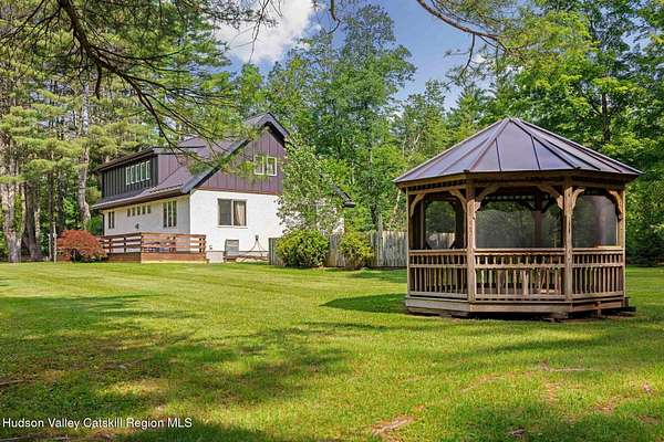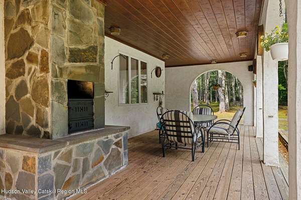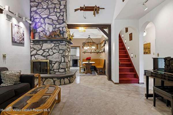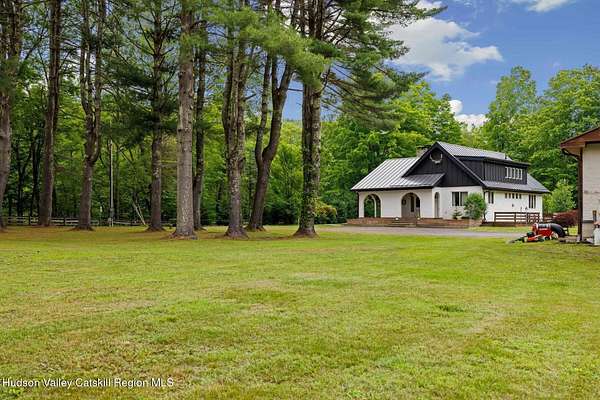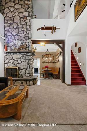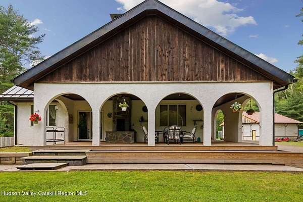 Welcome to an undiscovered area known as Napanoch, NY. Here you will find this amazing stream side contemporary home, located on 28 acres and built by a master cabinet maker for his young bride. Health issues are forcing the sale of this dream home and all offers will be considered, even owner financing with half down. When you leave the town road and head back this quarter of a mile driveway you can sense just how special this home site is. With roughly 2,100' of Rondout Creek frontage and 1,900' of town road frontage the possibilities here are endless. Sitting by the creek is a unique contemporary home with two ground floor bedrooms. Upstairs you'll find the third bedroom and a large game room, complete with its own wet bar! The two-story stone fireplace in the living room made of Fools Gold will mesmerize you. The 30 x 42 four car garage will impress you as well, and it even has room for all your toys. The extensive road frontage will allow for the ultimate compound if desired. The creek frontage is just gorgeous and so peaceful while sitting on the covered back porch. The home was built like a fortress and sits safely out of the flood plain, looking down on the creek. New standing seam metal roof on both buildings! Check out the interior 'paint' and be amazed to find out it's really wallpaper. A 3D Walkthrough Tour is available in the digital Lookbook or by request from the listing agent.