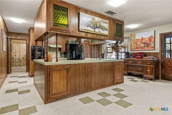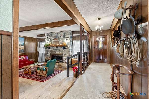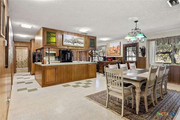 Wow! Step back in time to this single story 4 sided stone/rock style ranch hill country home that is in great shape and sits on almost 7 acres! It is currently an active AirBnb capable os sleeping 12! HUGE rooms starting with a 17x22 great room, a 12x16 dining area & the 3rd bedroom is 12 x40 with 4 double beds! The property has covered porch & patio, 12x16 storage shed, fenced back yard plus a 6 acre fenced pasture for cows or horses. Owner currently has a grazing lease so the pasture access gates are locked. Home is fully furnished & 1 day minimum advance notice is required for all showings. Appliances and some furnishings may be negotiable. Take a look & bring us an offer!