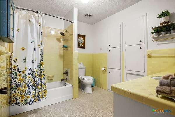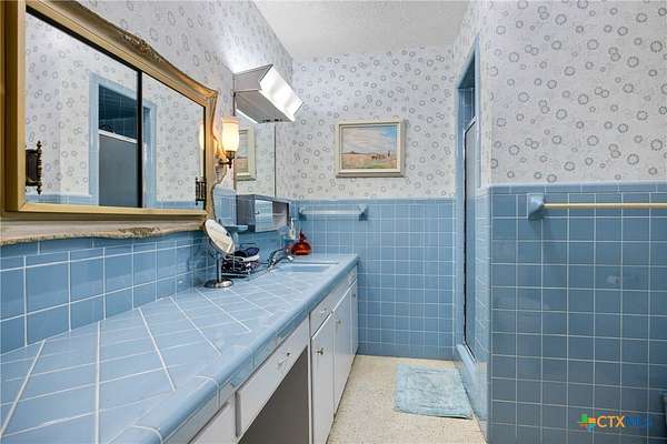 - Beamed Ceilings, Breakfast Area, Ceiling Fans, Eat In Kitchen, Entrance Foyer, Kitchen Dining Combo, Pantry, Tile Counters, Vanity