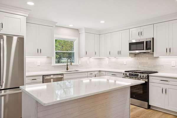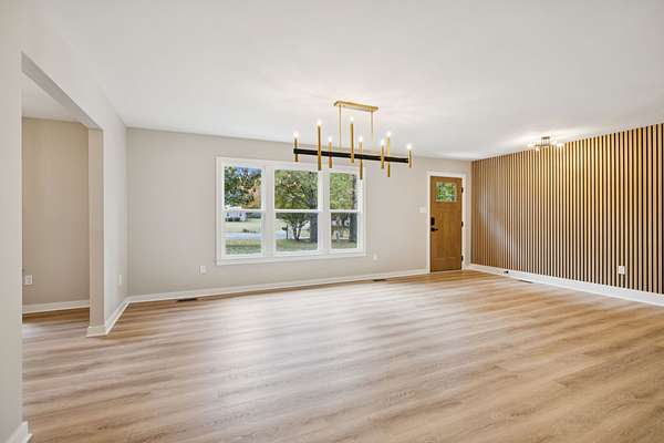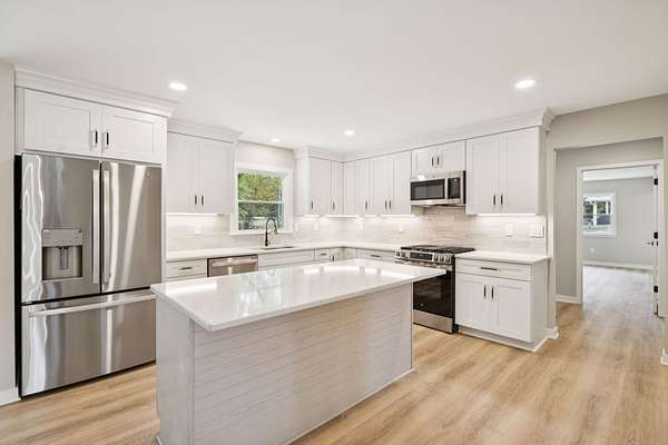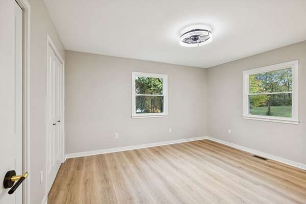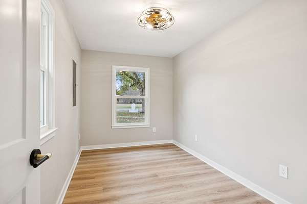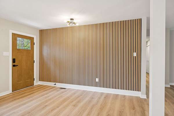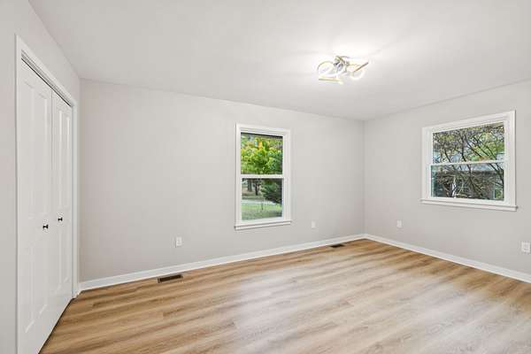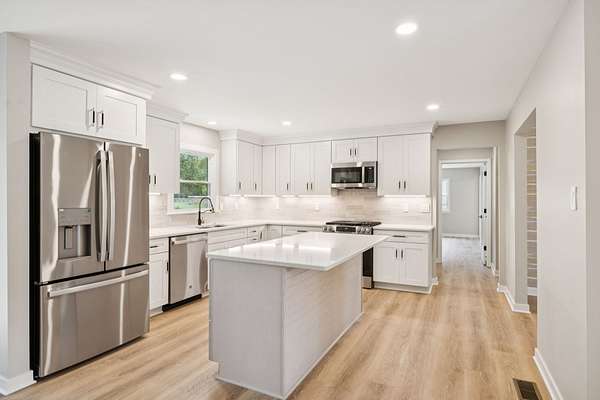 NEW PRICE!!! Rare opportunity in the triple Blackman school zone. Gorgeous 1.5+ acre level lot with mature trees on a dead end cul-de-sac street. No HOA and no city taxes! Totally renovated down to the studs. New roof, tankless water heater, windows, doors, ductwork, and an encapsulated crawl space. Super convenient location, just minutes from local retail, the interstate, and Veteran's Parkway. The kitchen and baths have all been tastefully updated with the materials today's buyer demands. Quartz counters, brand new soft close cabinets, elegant tile designs, stainless appliances, modern lighting/plumbing fixtures, and so much more! 5 inch wide durable LVP flooring throughout. A beautifully designed drop zone and entry foyer accent wall greet you as you enter the home. The floor plan has been opened up and flows seamlessly for both living and entertaining. A 13X7 private office space off the owner's suite can also be converted into a large walk-in closet if so desired. Painted white brick exterior with black trim. The backyard has unlimited possibilities! There is plenty of space to add a detached garage or workshop. A pool could also be a great future addition to the property. There are currently two storage barns on the property that remain with the home. Many homes on the street have also been renovated! Don't miss your opportunity to call this unique and wonderful property your new home!