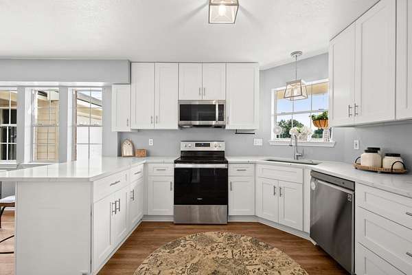 - Dishwasher, Disposal, Electric Oven, Electric Range, Electric Water Heater, Exhaust Fan, Microwave, Stainless Steel Appliance(s)